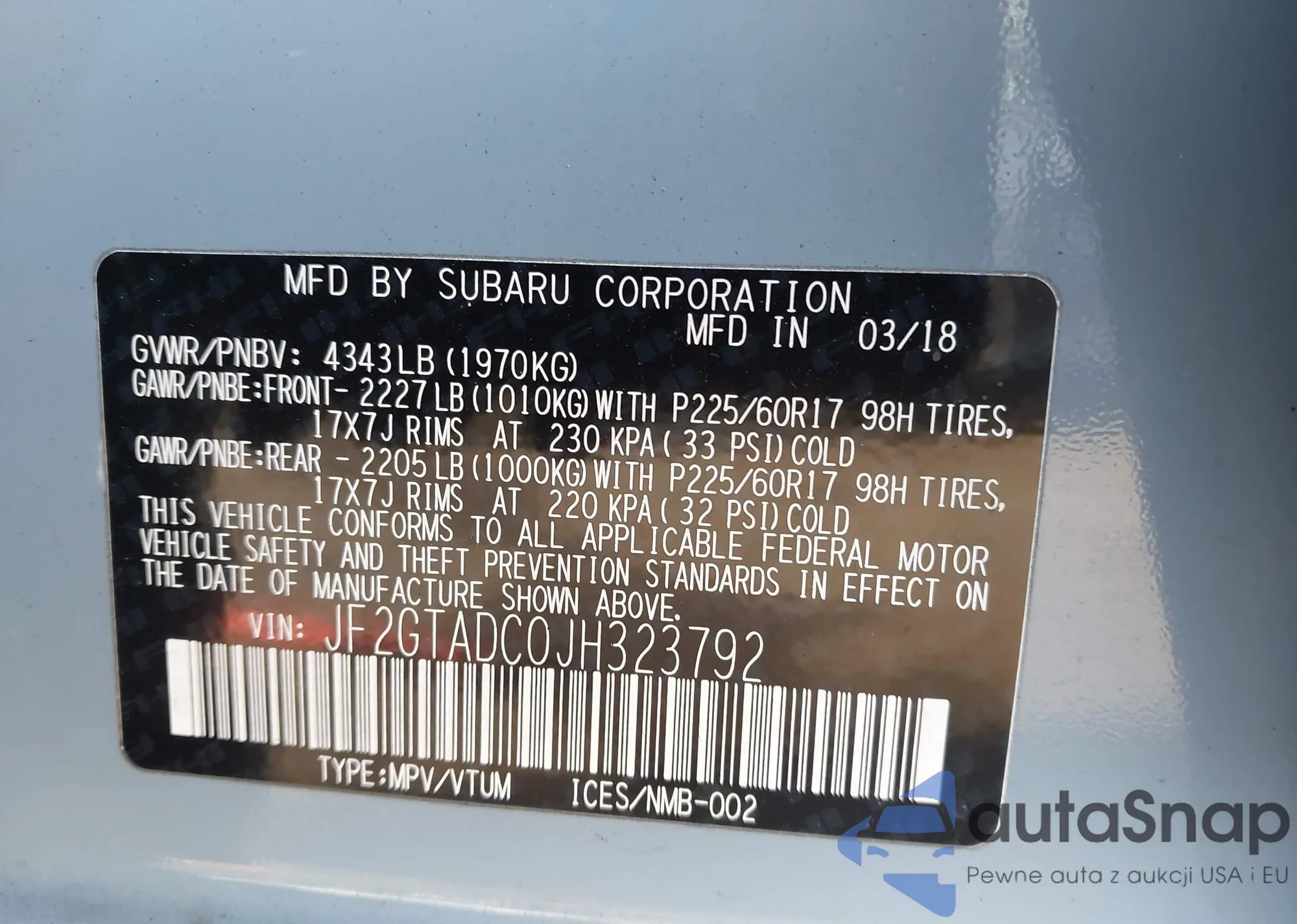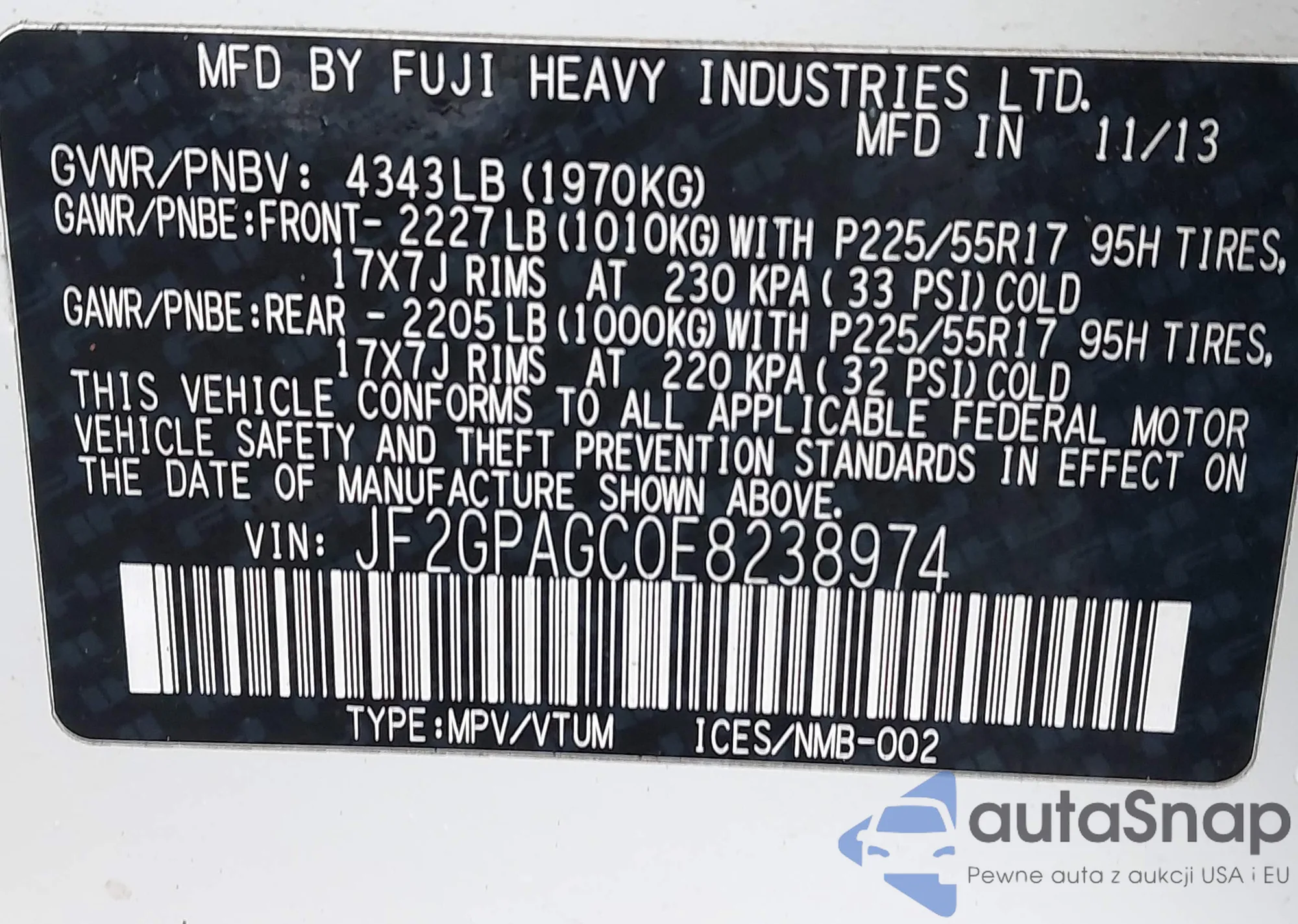 LOT: 43986314 VIN: JF2GPAGC0E8238974