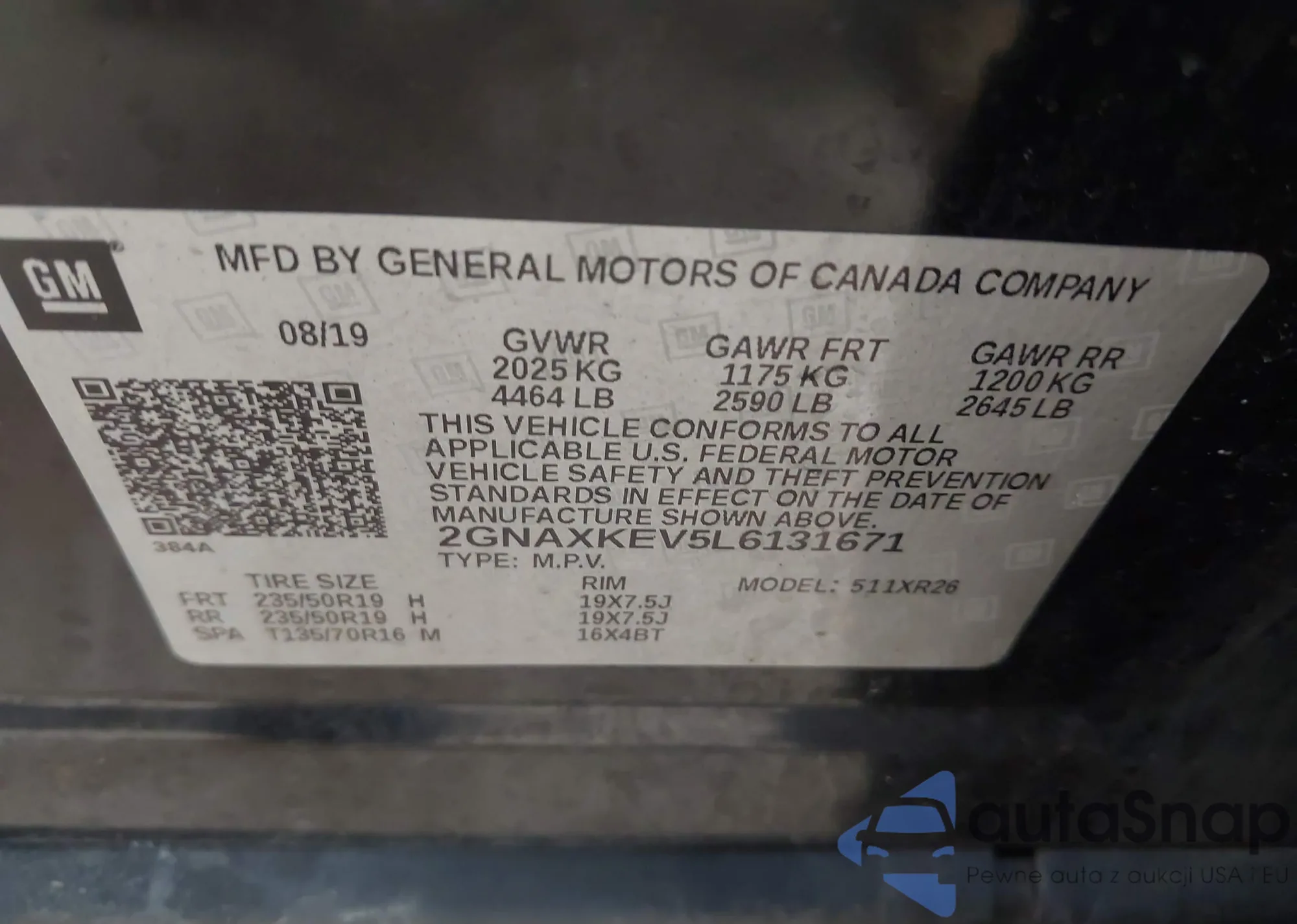 LOT: 44154145 VIN: WP1AA2A50LLB12161