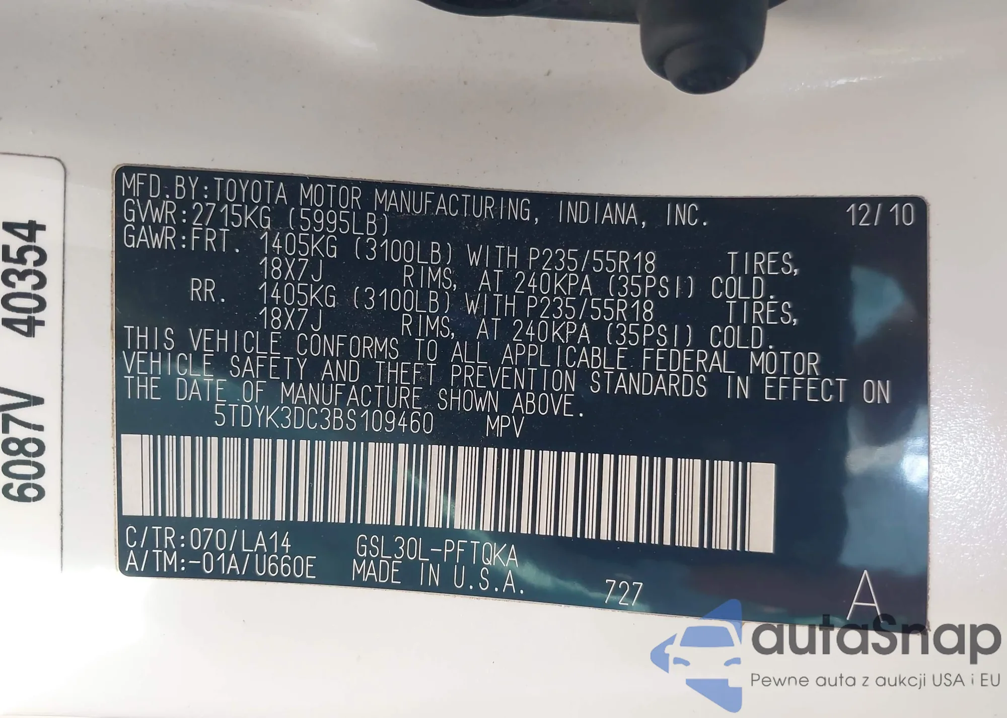 • VIN 5TDYK3DC3BS109460