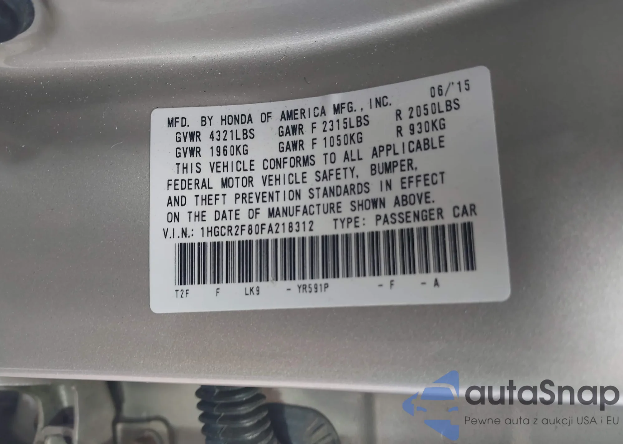 • VIN 1HGCR2F80FA218312