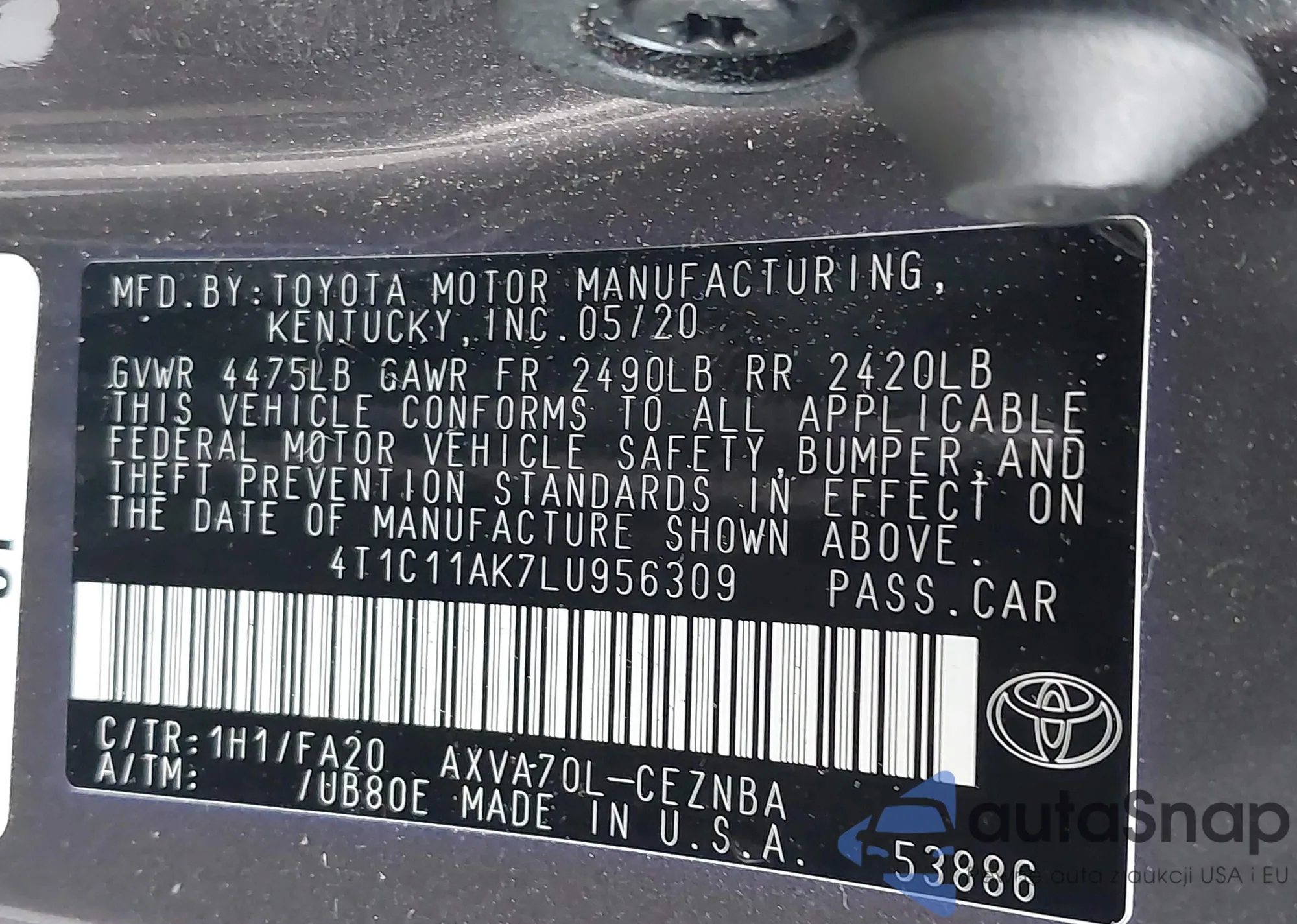 • VIN 4T1C11AK7LU956309