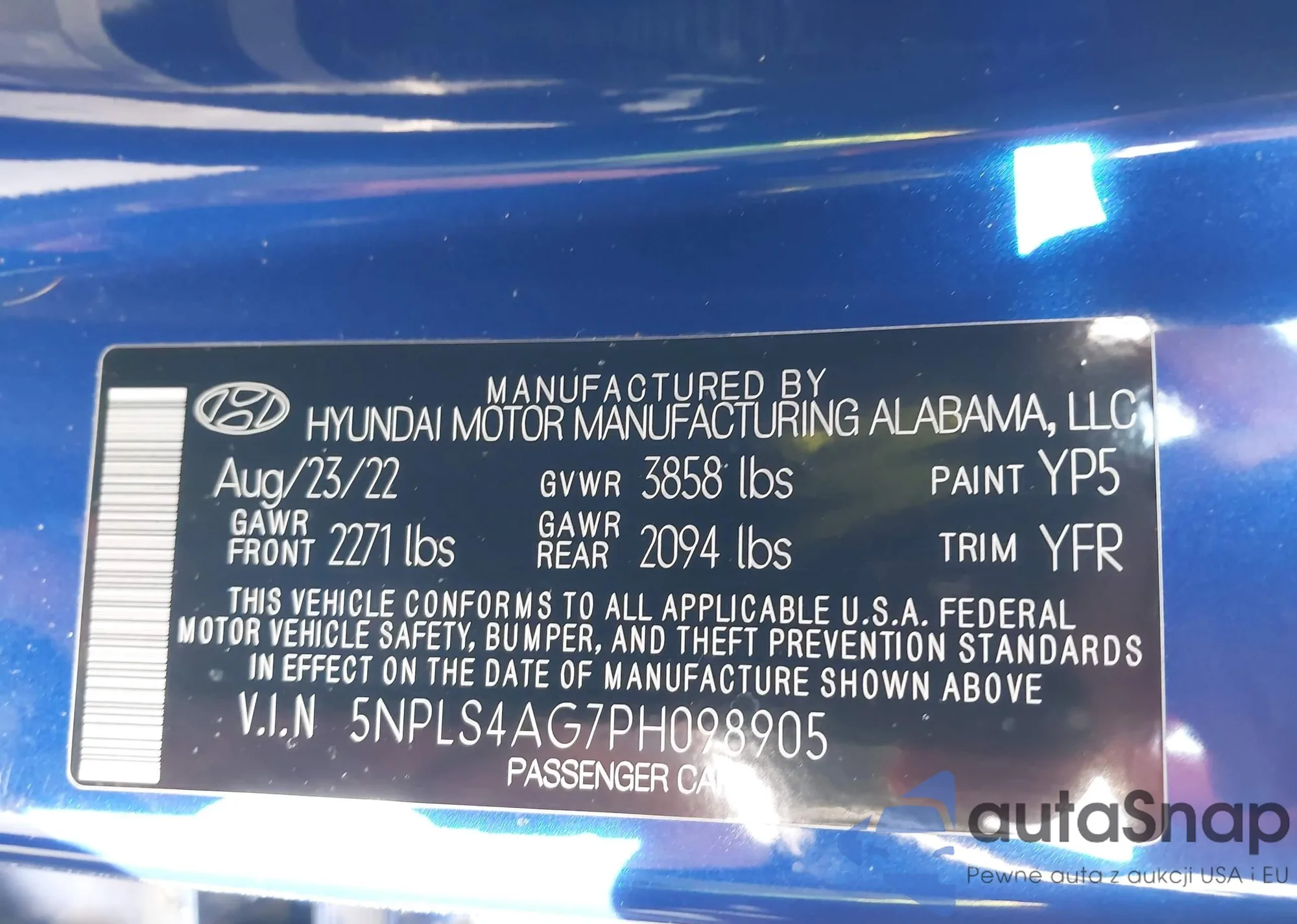 • VIN 5NPLS4AG7PH098905