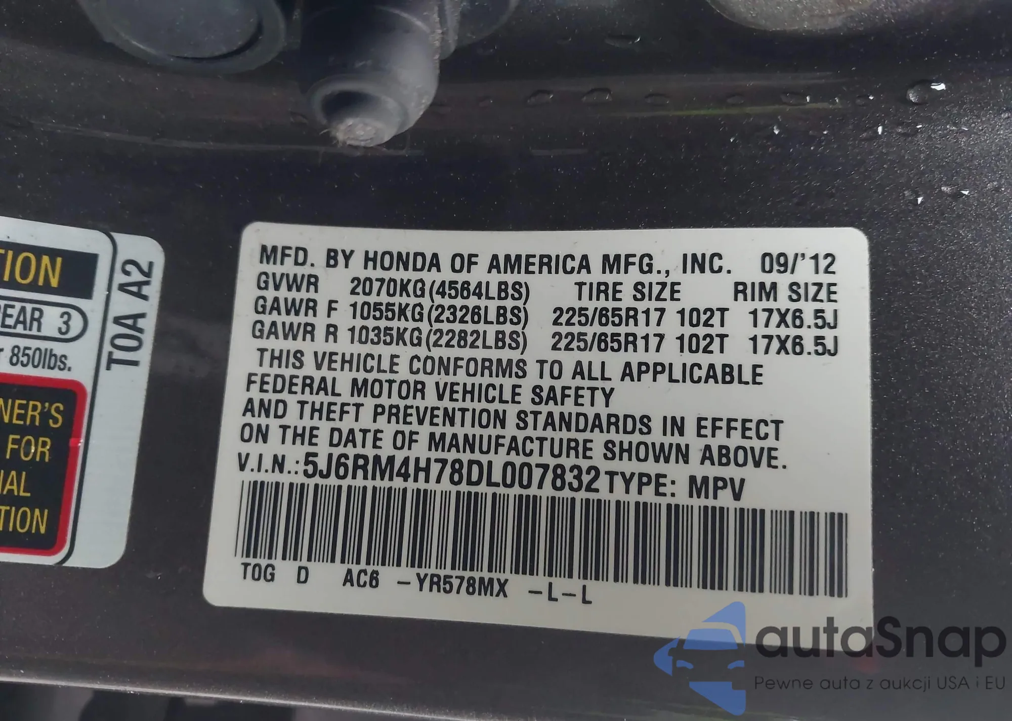 • VIN 5J6RM4H78DL007832