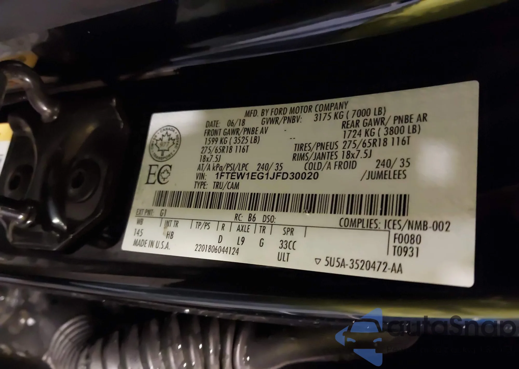 LOT: 41230555 VIN: 1FTEW1EG1JFD30020