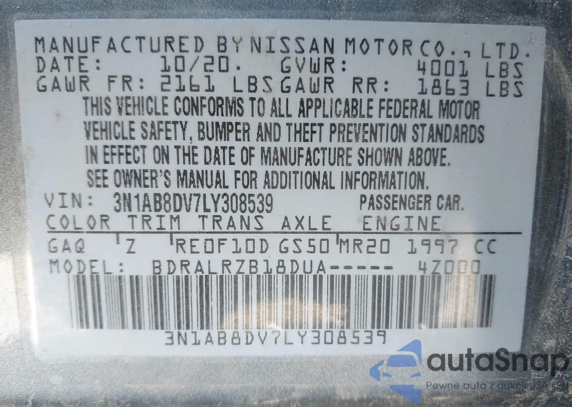 LOT: 42118463 VIN: 1N4AL21E99N484550