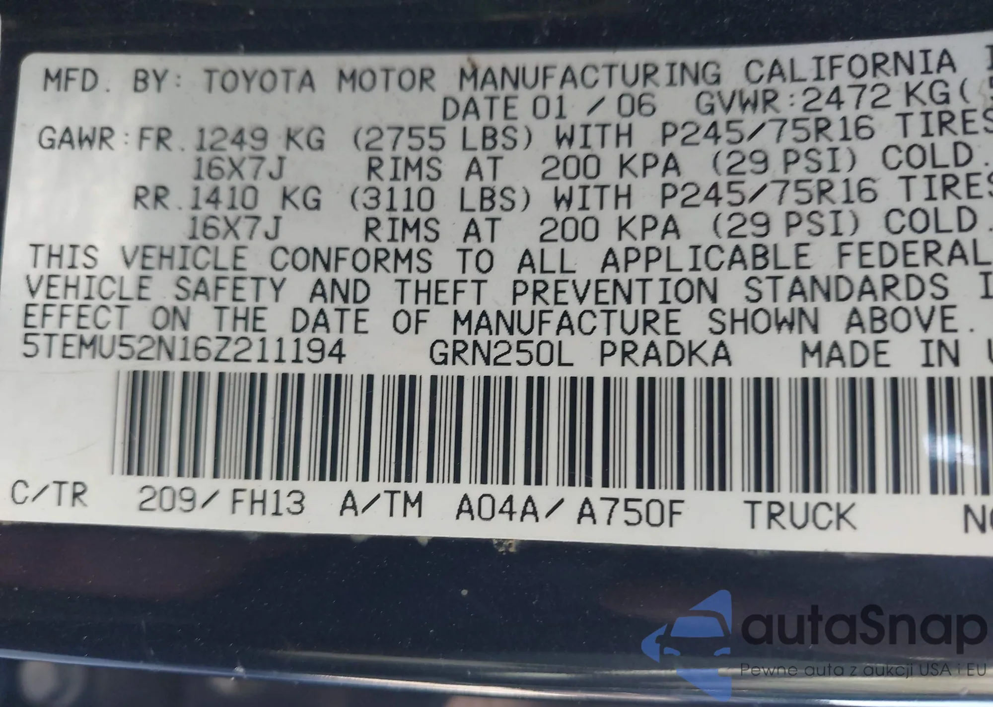 • VIN 5TEMU52N16Z211194