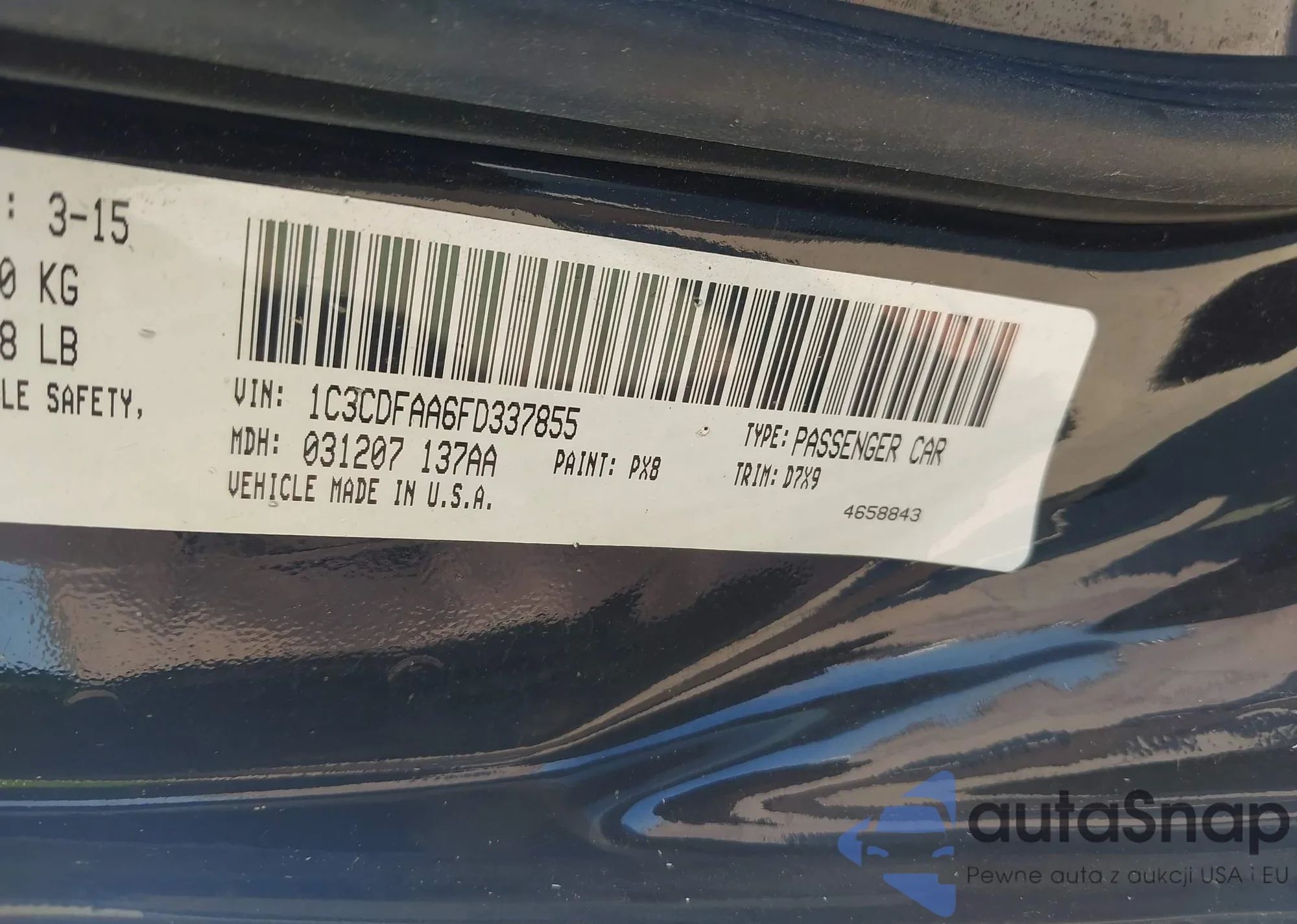 LOT: 43685818 VIN: 1C3CDFAA6FD337855