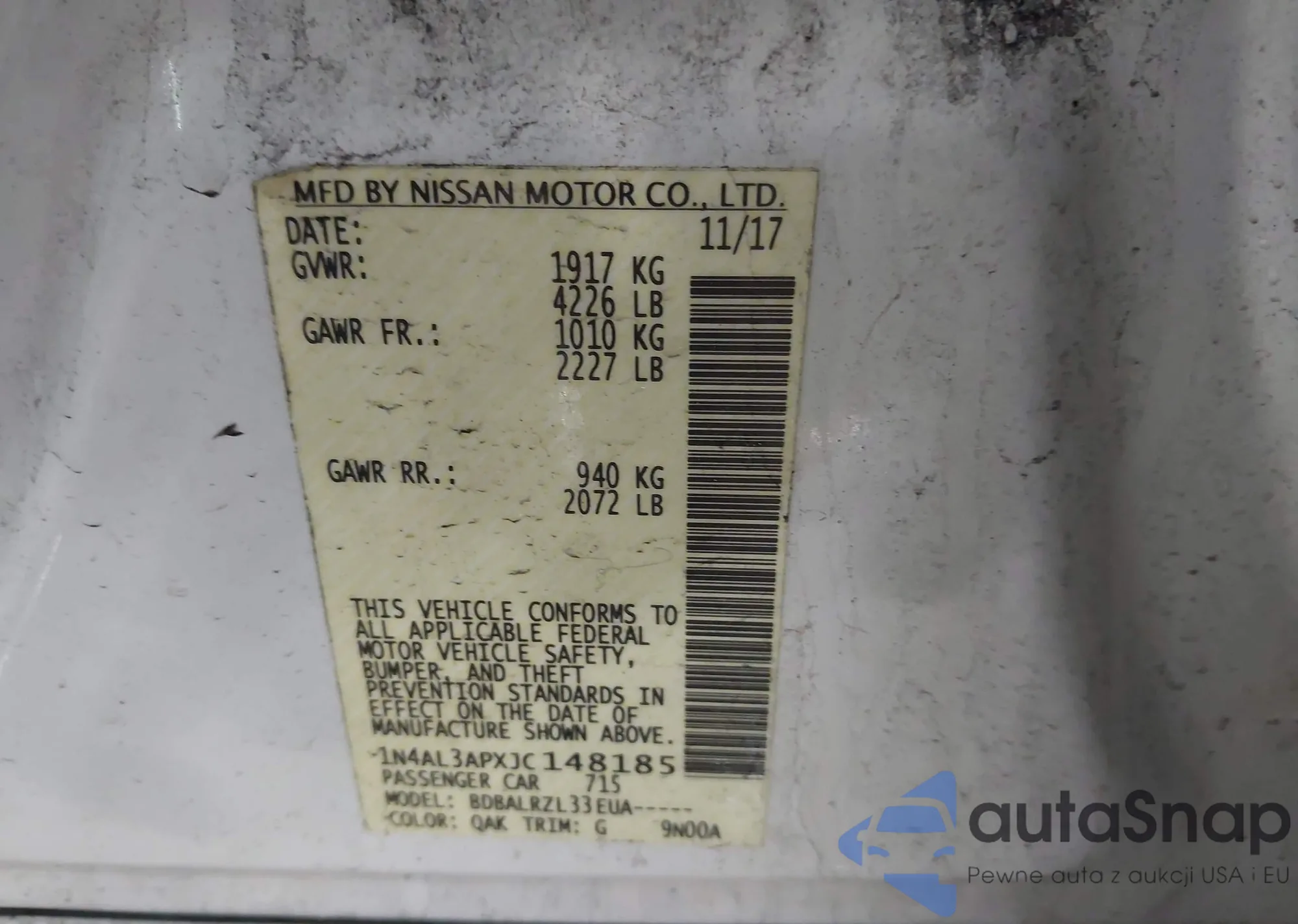 LOT: 44104428 VIN: 1N4AL3APXJC148185