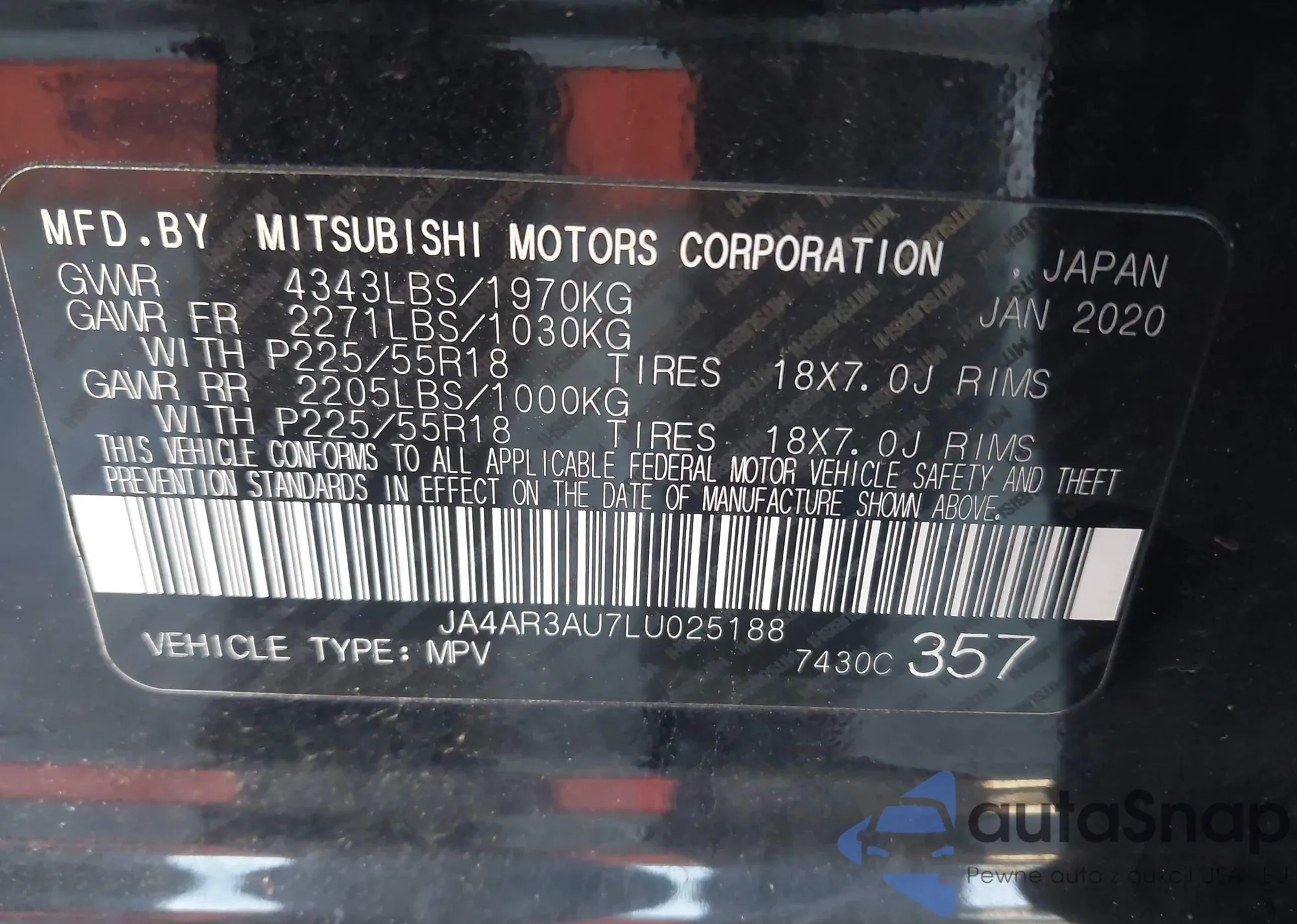 • VIN JA4AR3AU7LU025188