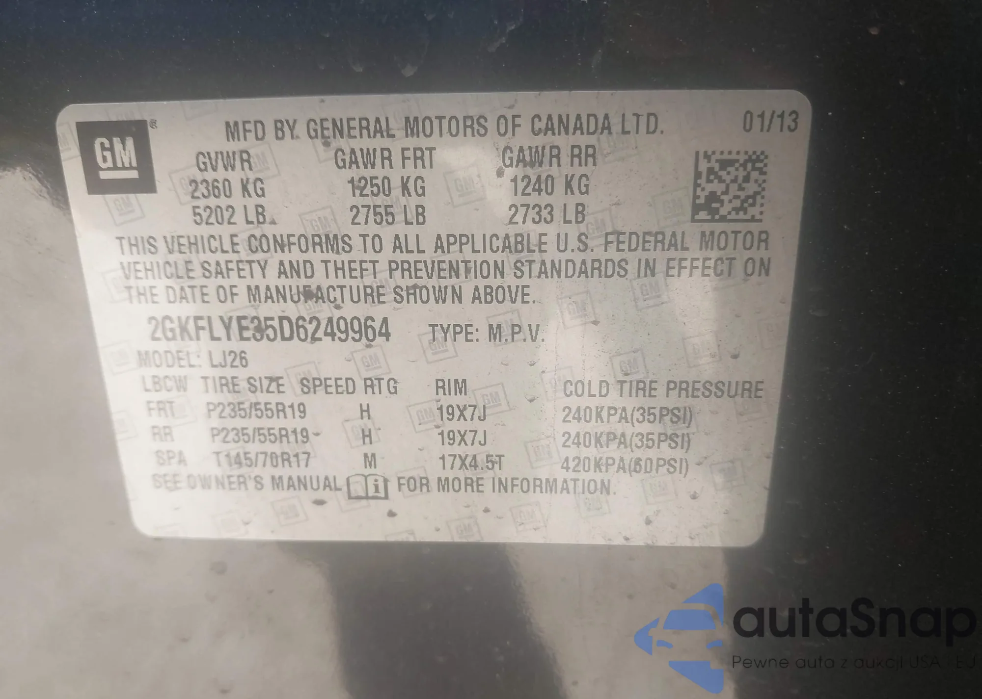 • VIN 2GKFLYE35D6249964