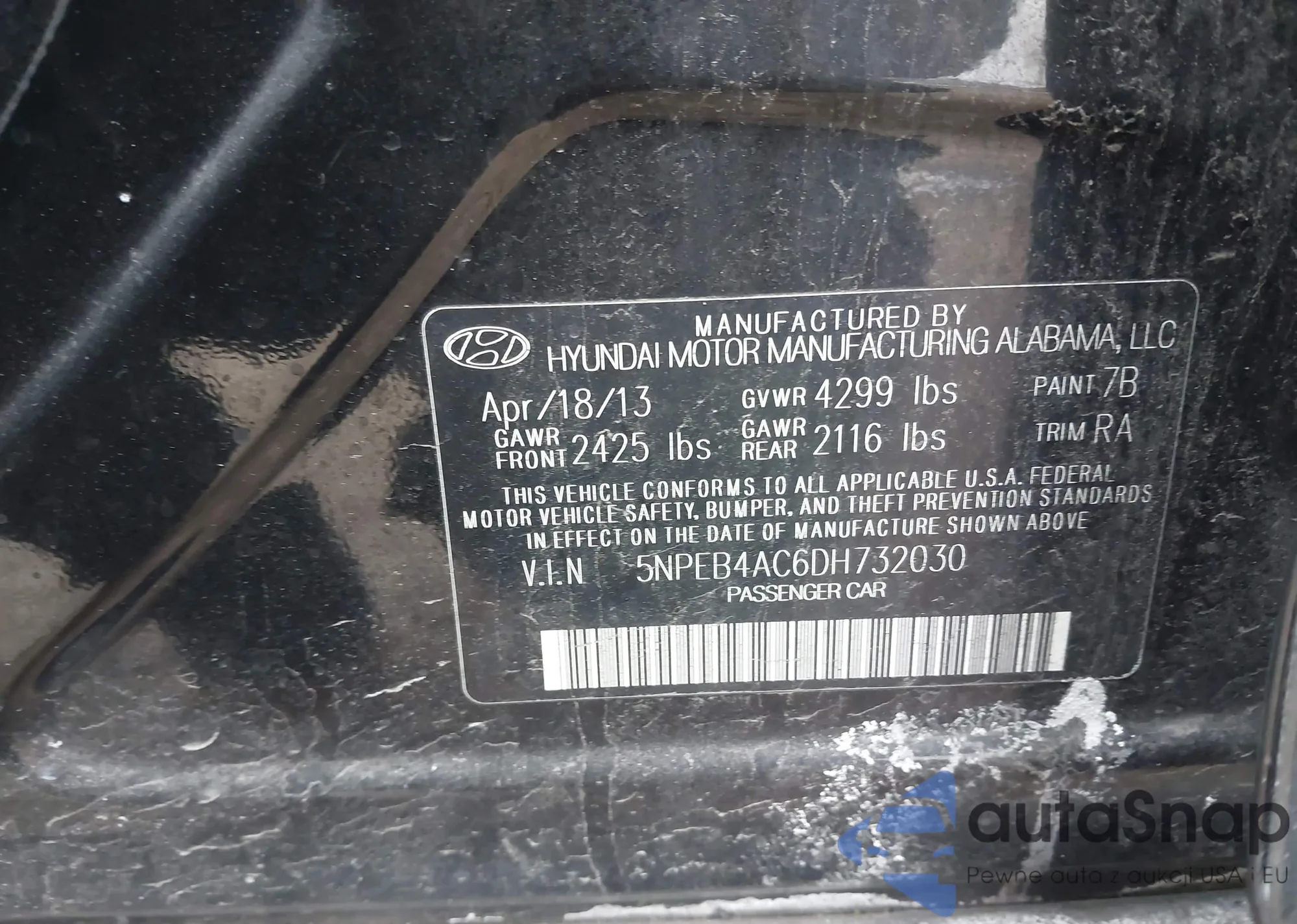 • VIN 5NPEB4AC6DH732030