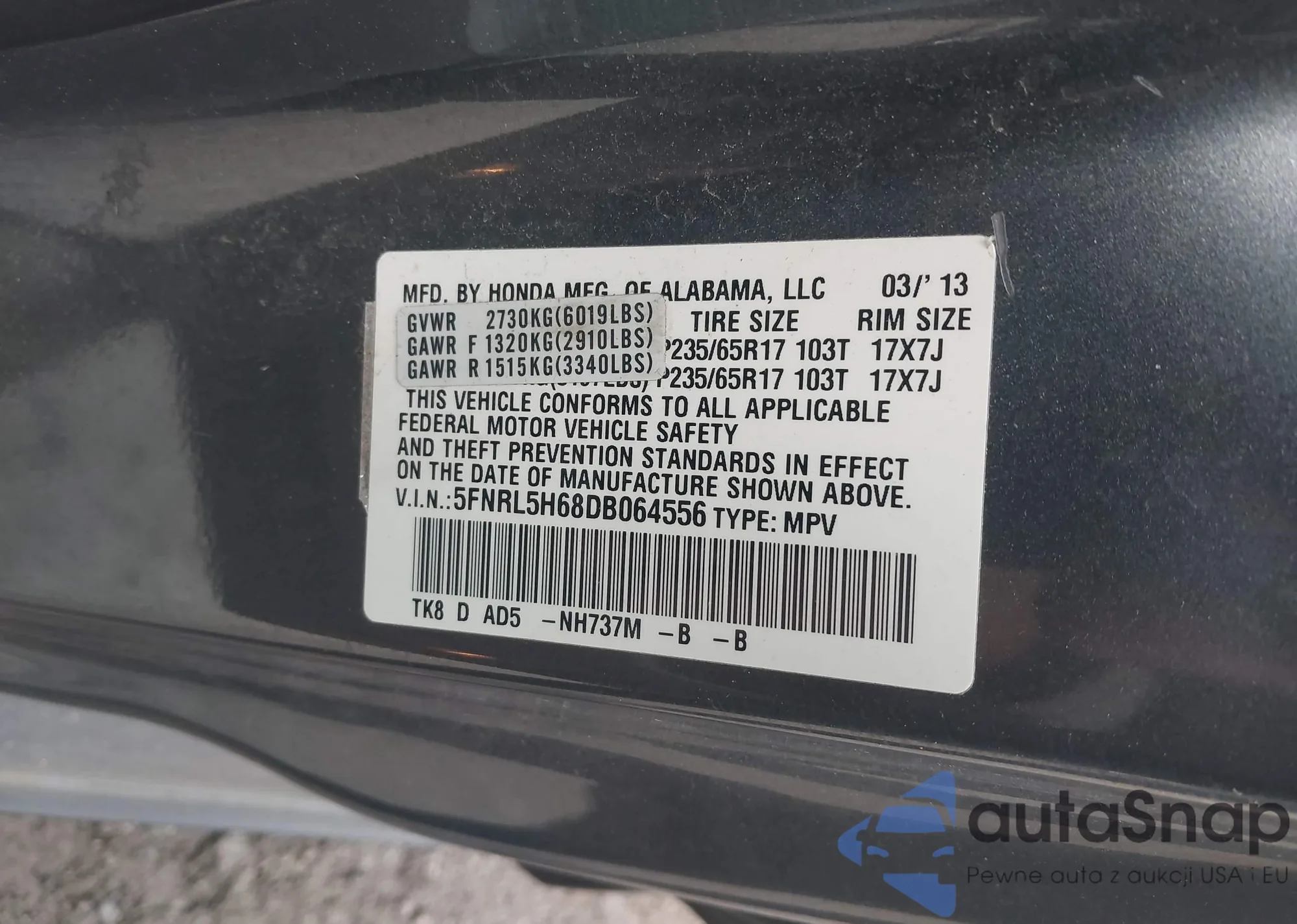 • VIN 5N1AL0MN7DC352459