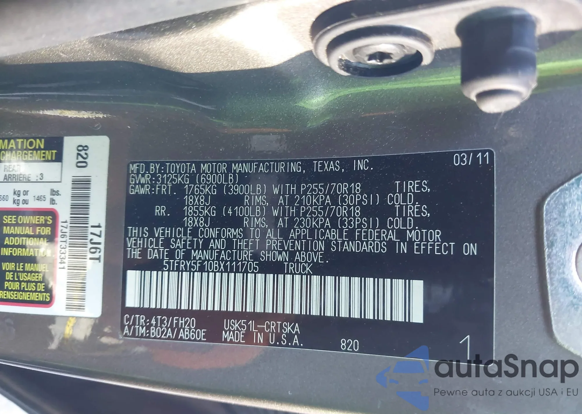 LOT: 44117799 VIN: 4T1BF3EK5BU760479