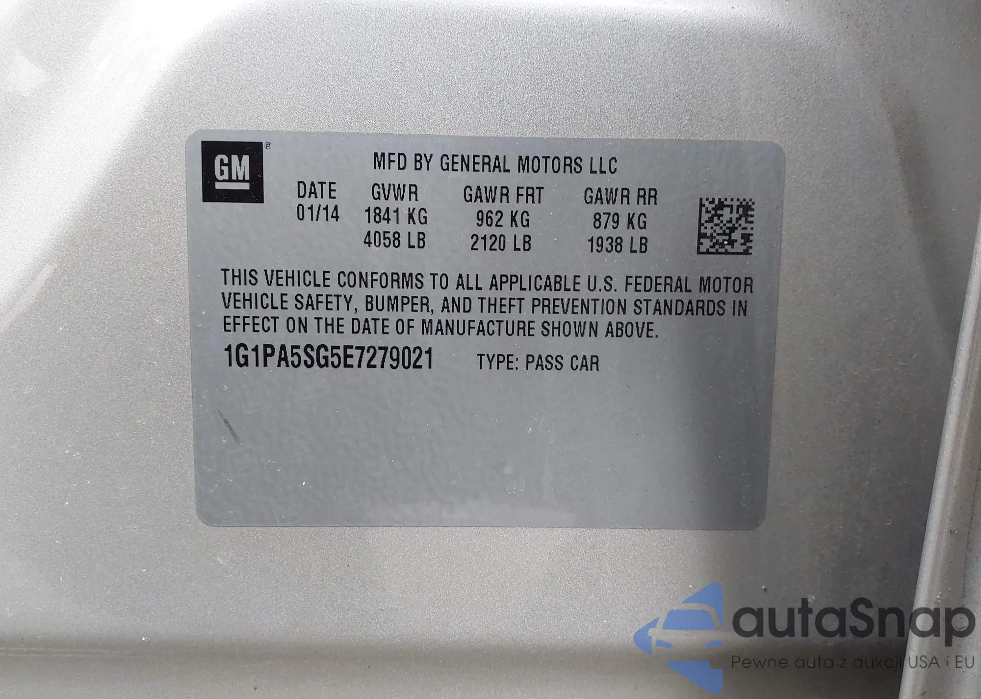 • VIN 1G1PA5SG5E7279021