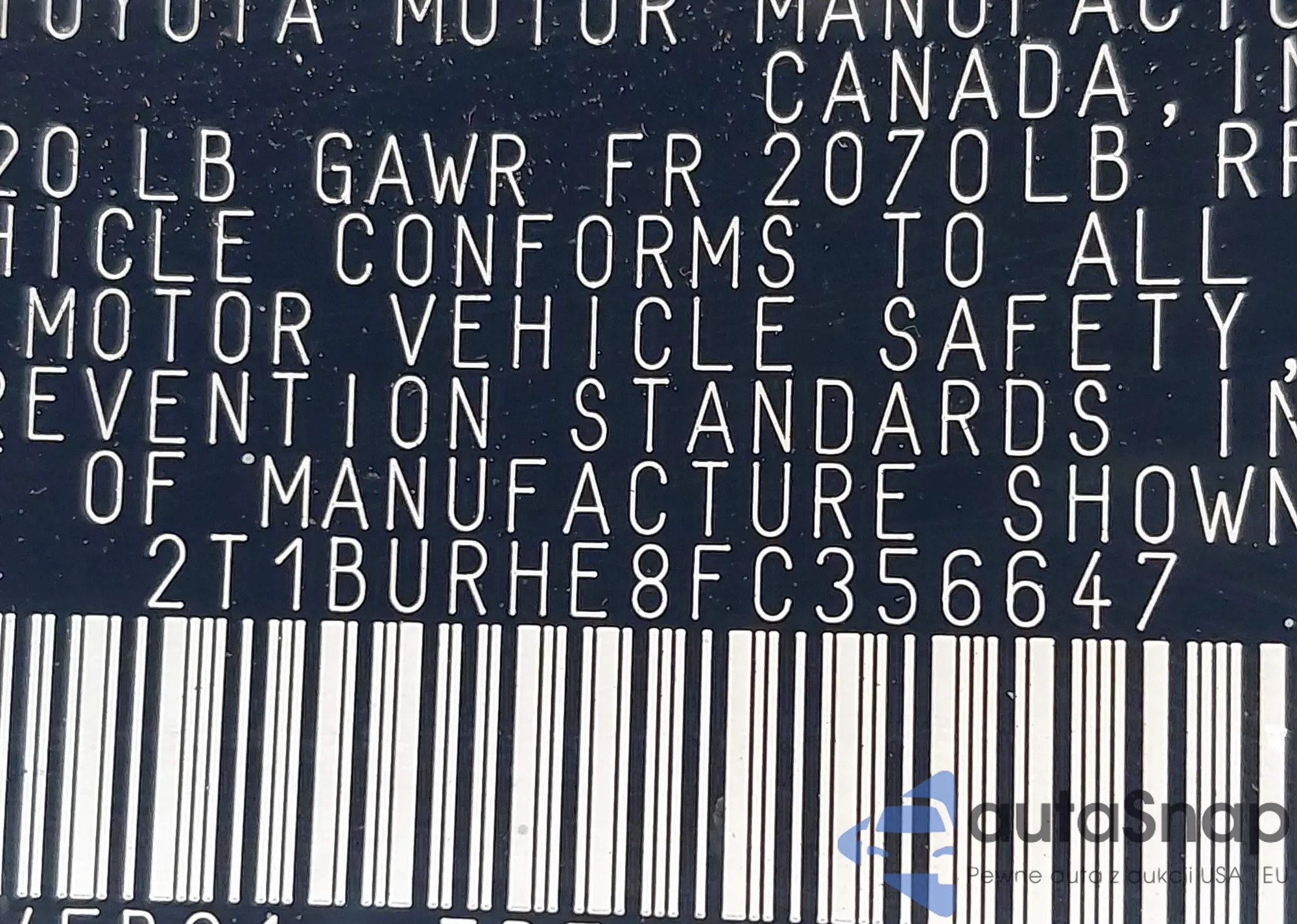• VIN 2T1BURHE8FC356647