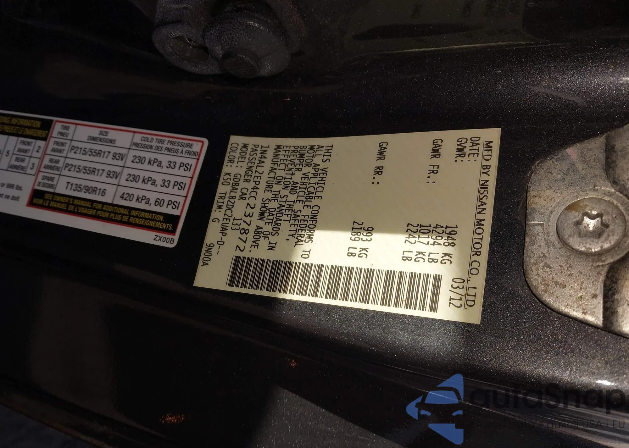 • VIN 1N4AL2EP4CC237872