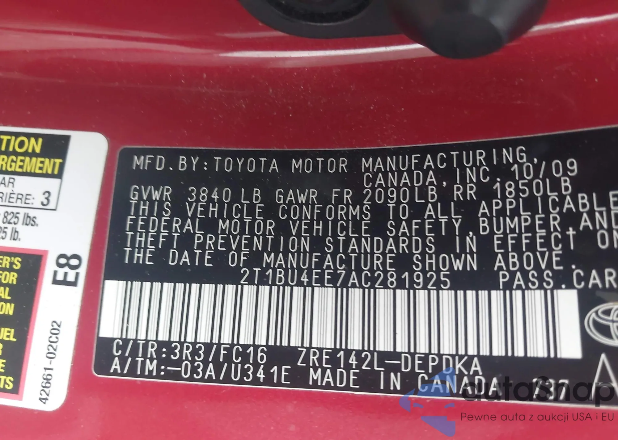• VIN 2T1BU4EE7AC281925