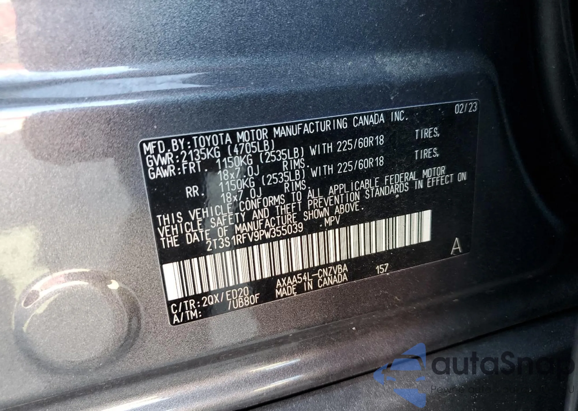 LOT: 69448984 VIN: 2T3S1RFV9PW355039