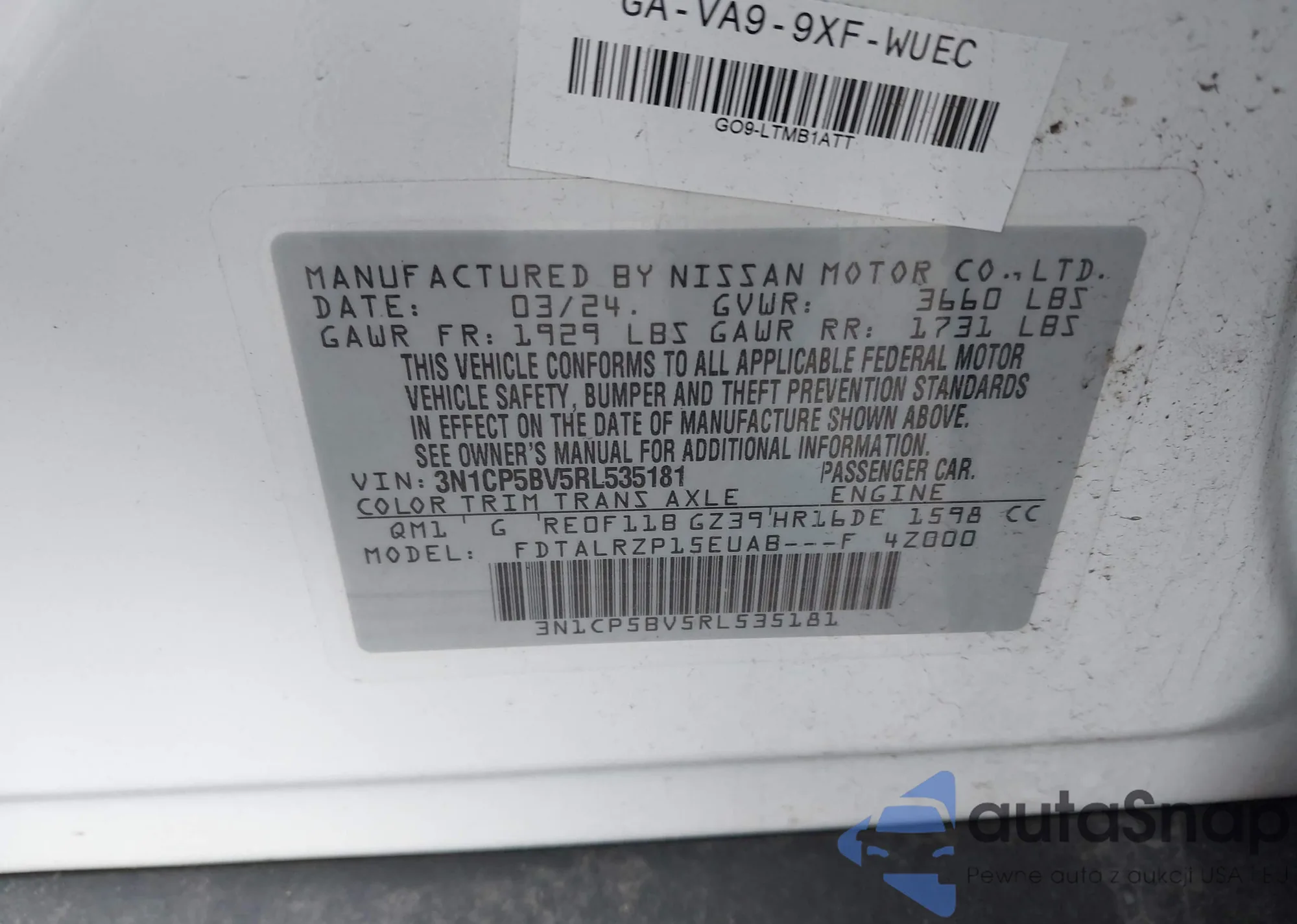 LOT: 44285830 VIN: 1N4BL4BVXLC213305