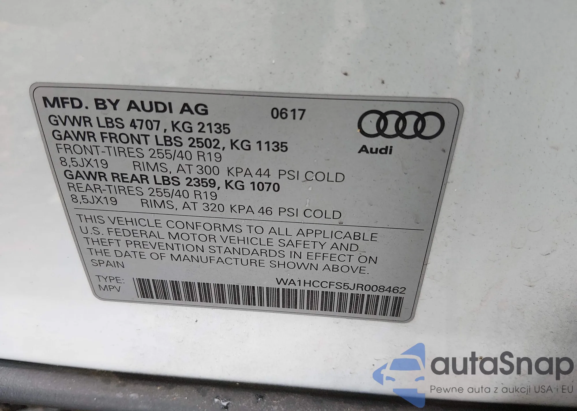 • VIN 1C4RJFAG2HC767118