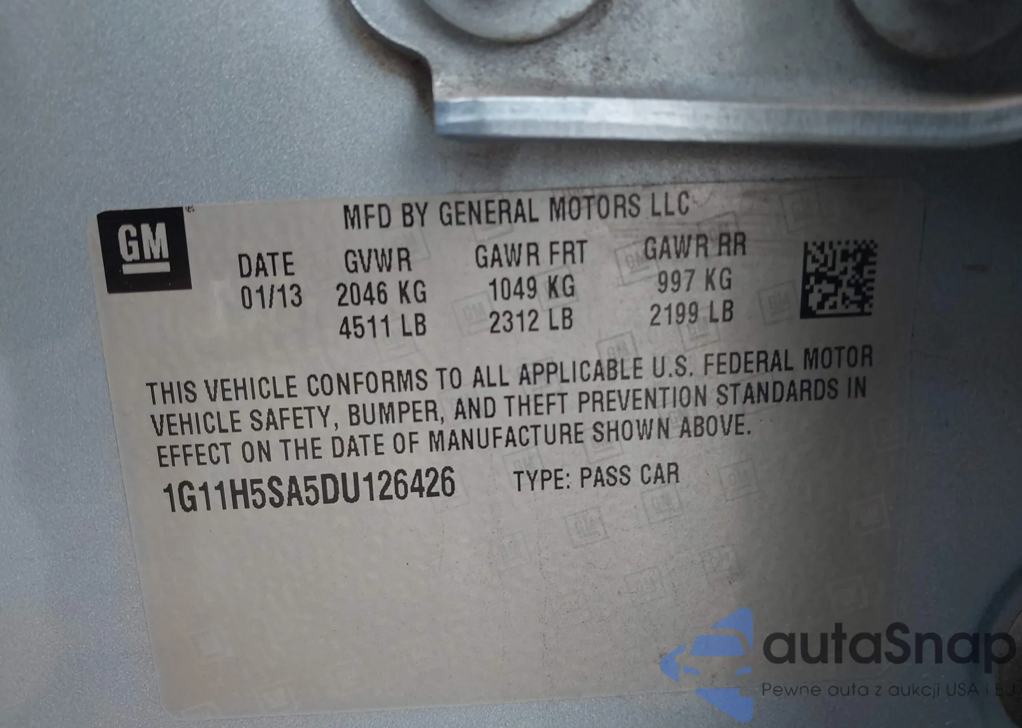 • VIN 1G11H5SA5DU126426