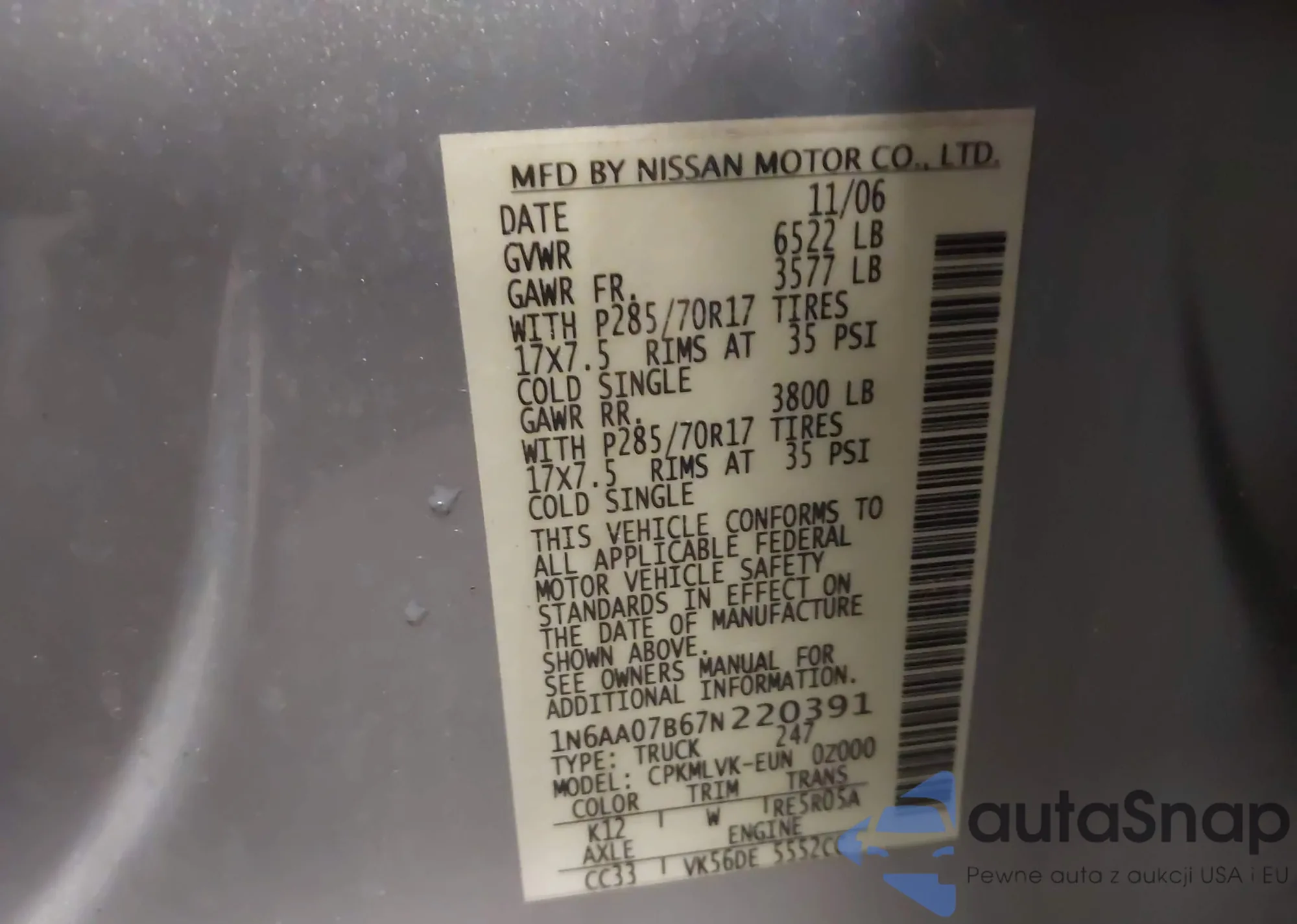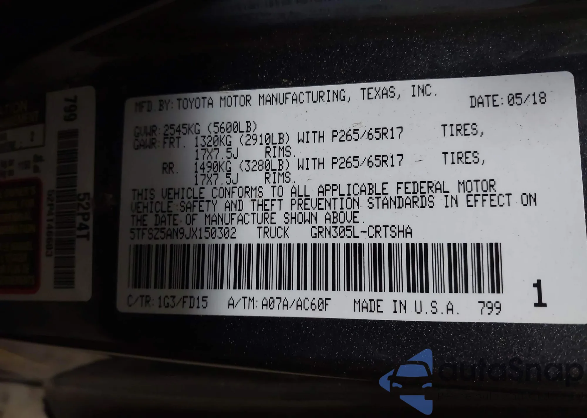 • VIN 5TFSZ5AN9JX150302