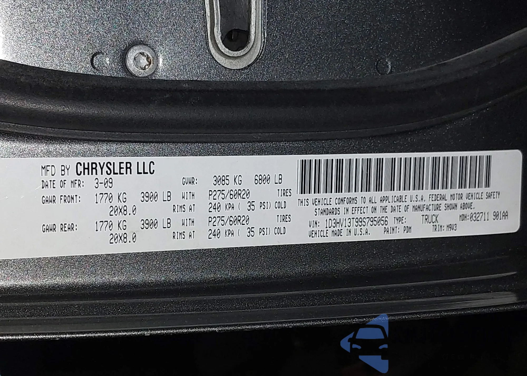 • VIN 1D3HV13T99S795056