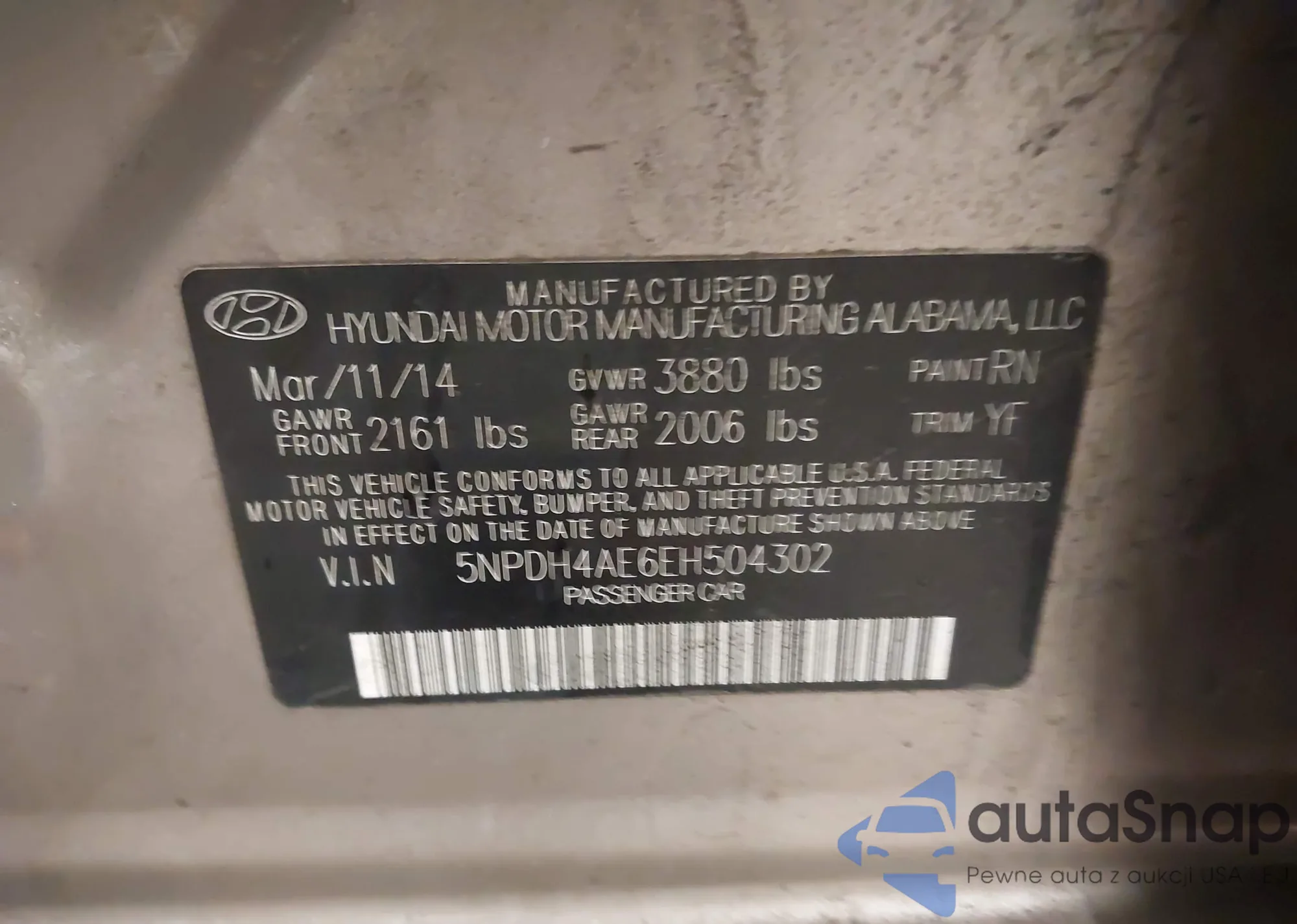 • VIN 5NPDH4AE6EH504302