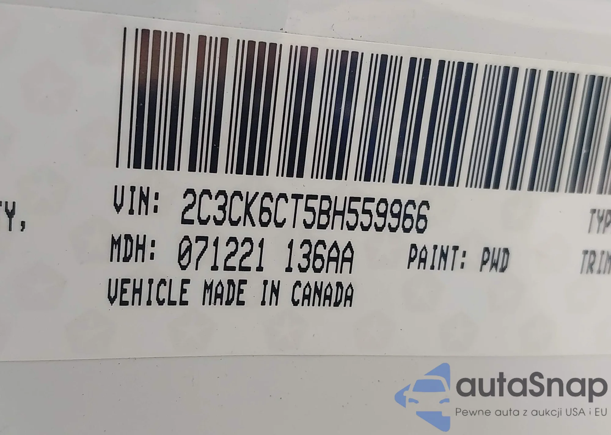 • VIN 2C3CK6CT5BH559966
