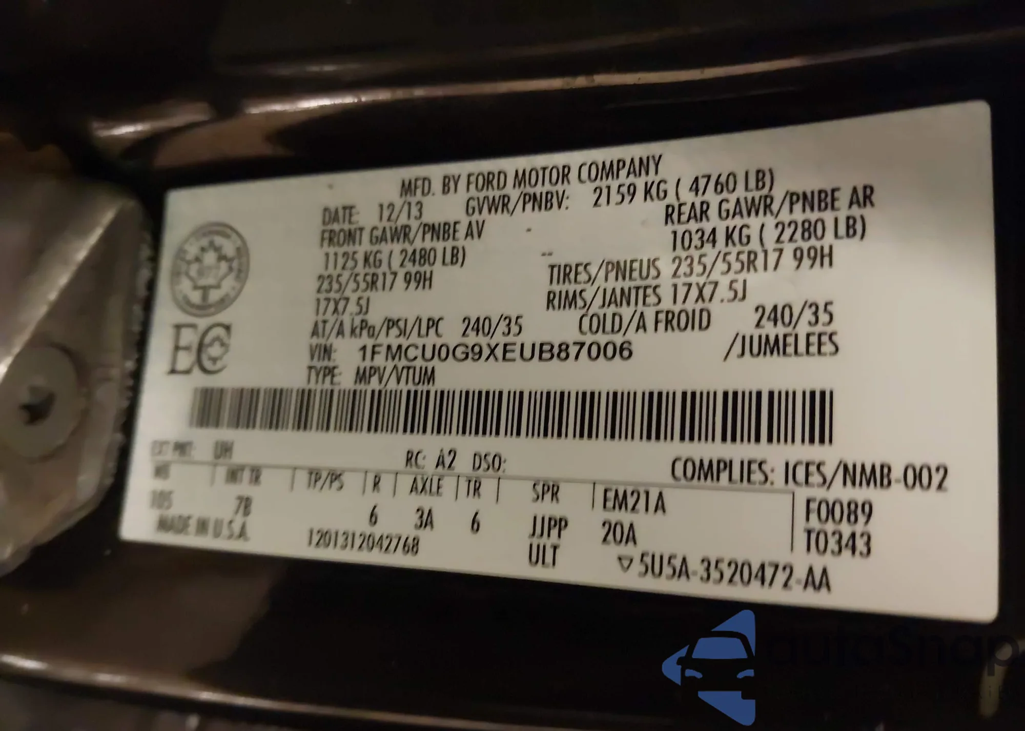 • VIN 1FMCU0G9XEUB87006