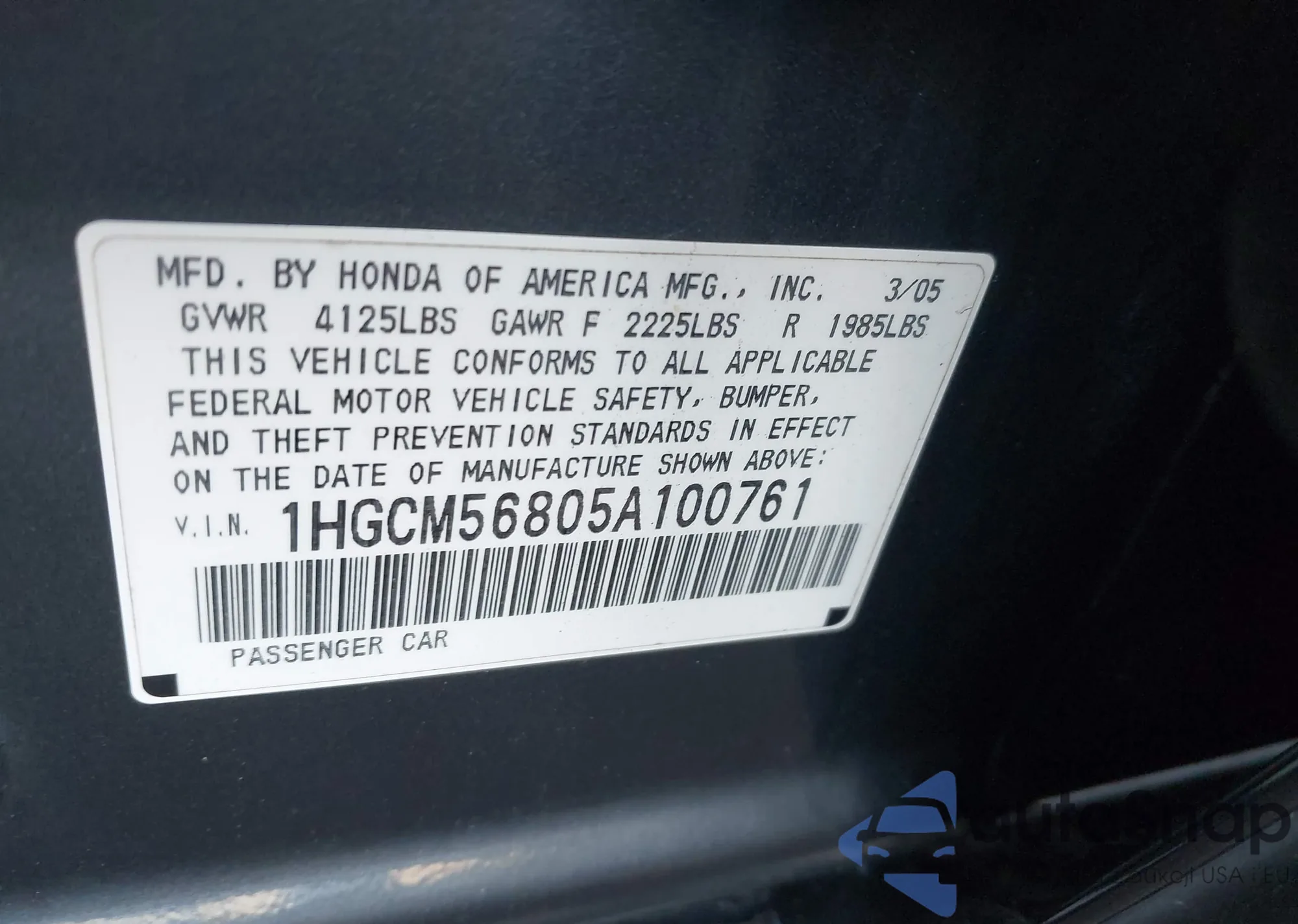LOT: 44204949 VIN: 1HGCM56805A100761