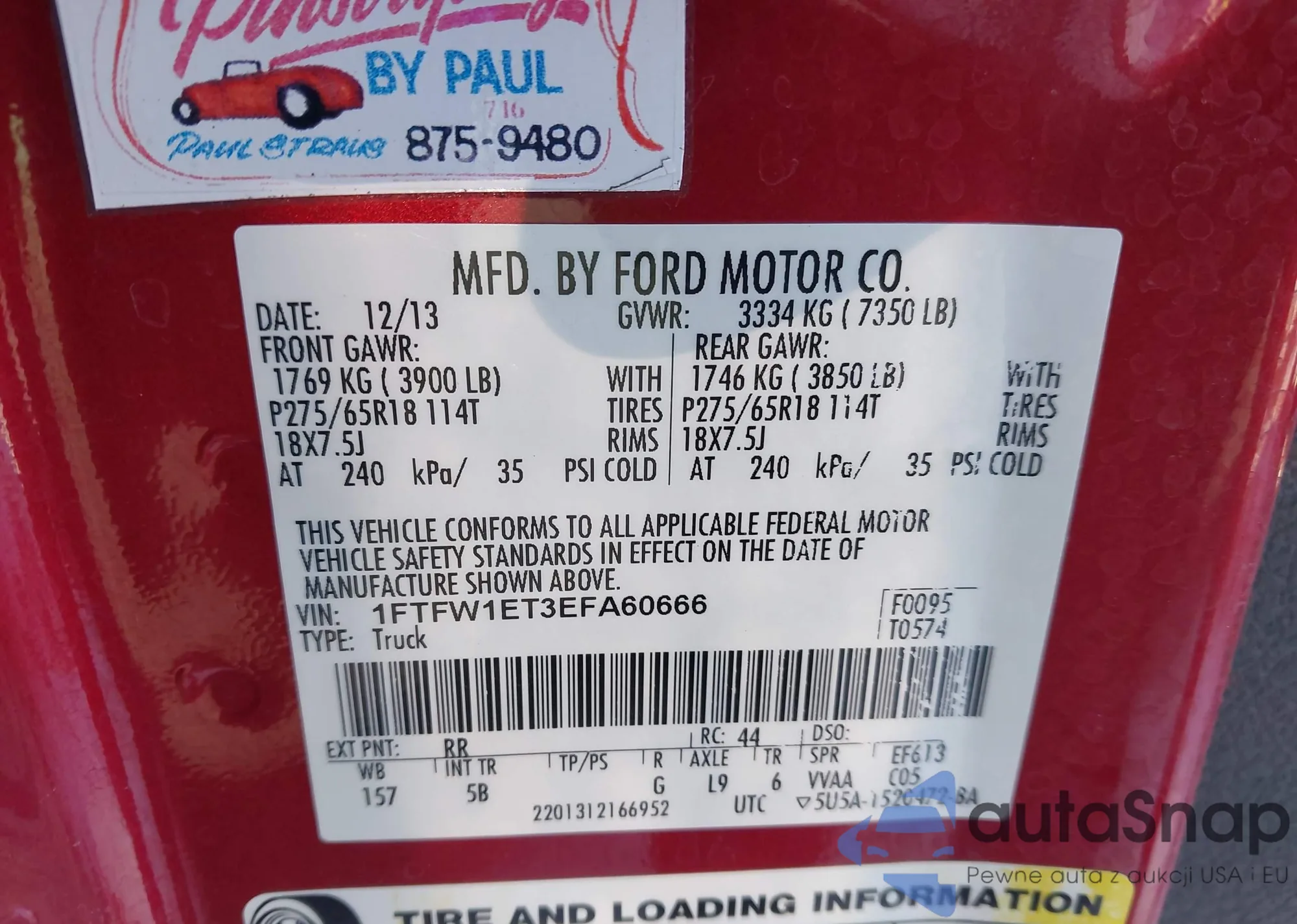 • VIN 1FTFW1EF1CFB07491
