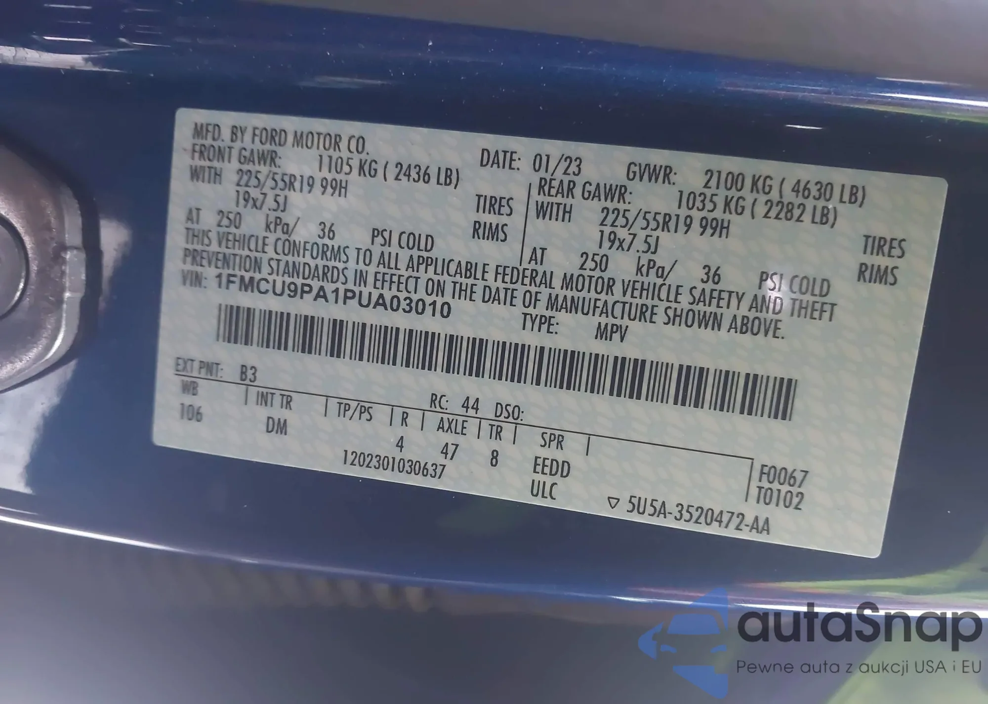 LOT: 44144398 VIN: 1FMCU9PA1PUA03010