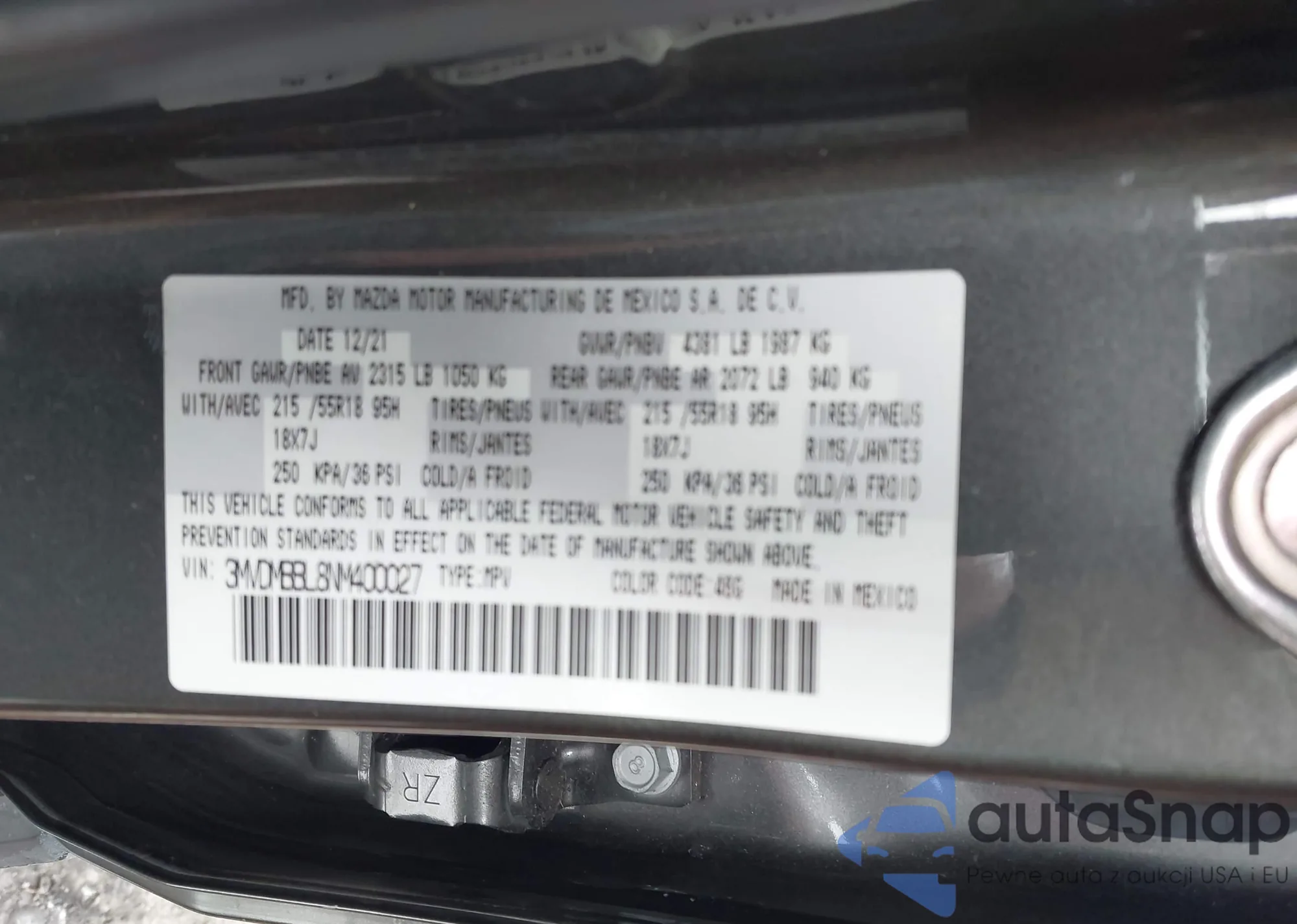• VIN 3MVDMBBL8NM400027