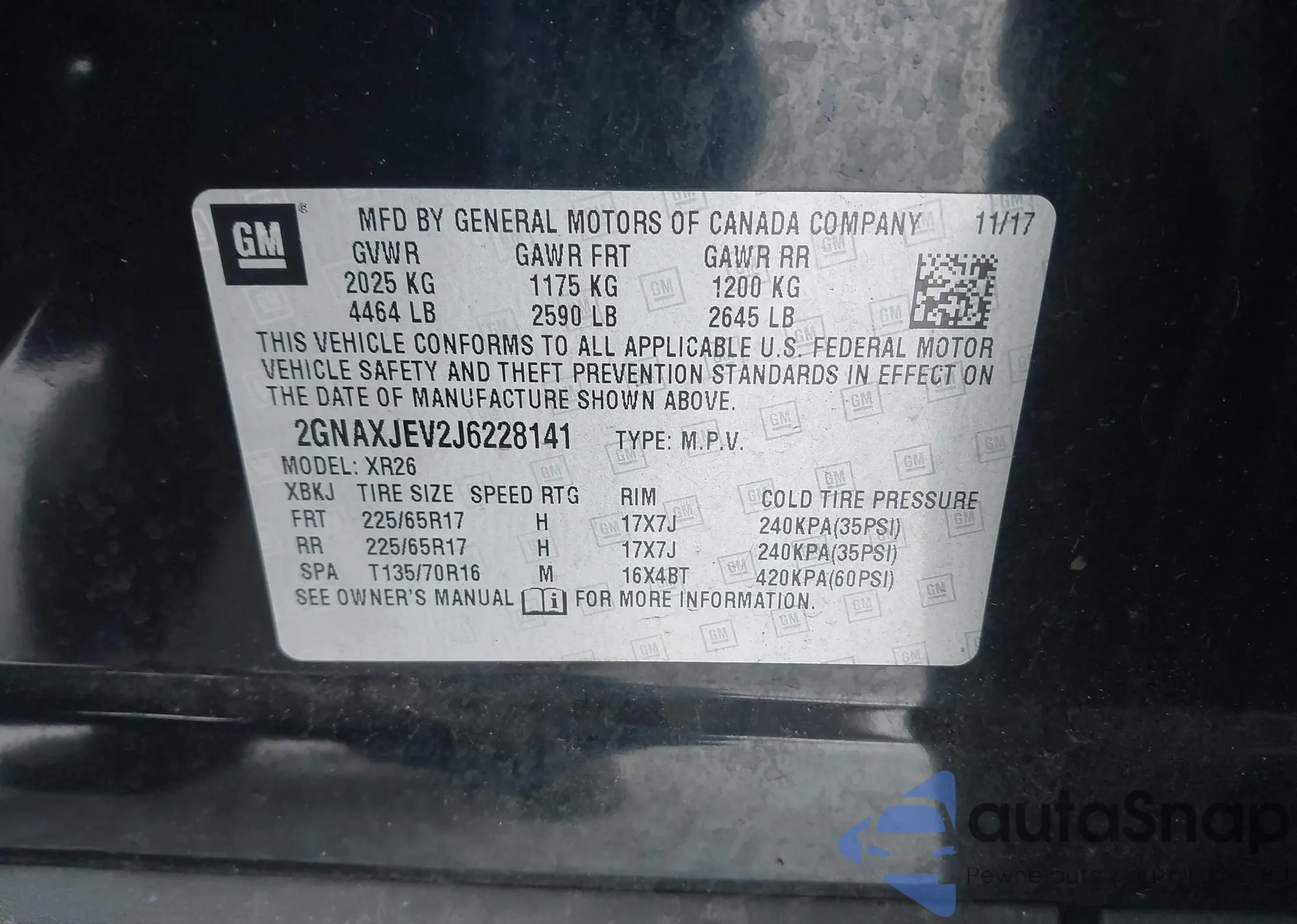 • VIN 2GNAXJEV2J6228141