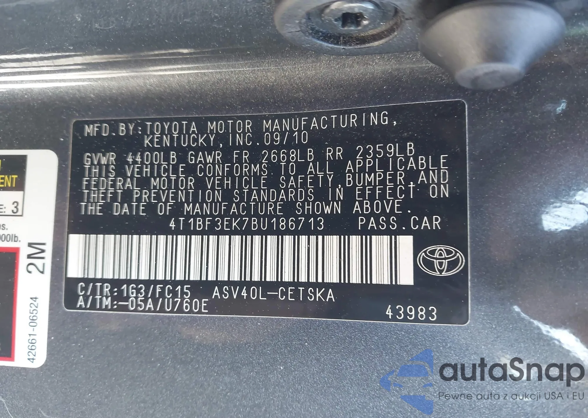 LOT: 44379155 VIN: 4T1BF3EK7BU186713