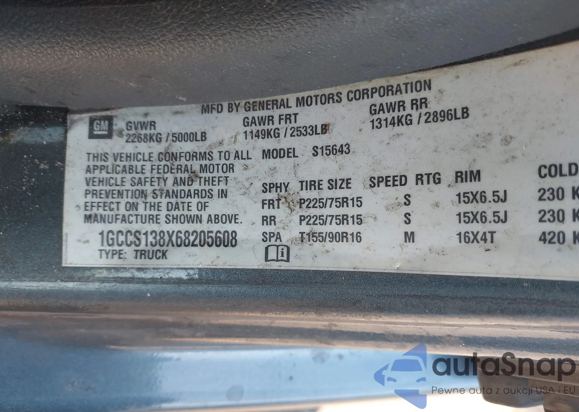 • VIN 1GCCS138X68205608