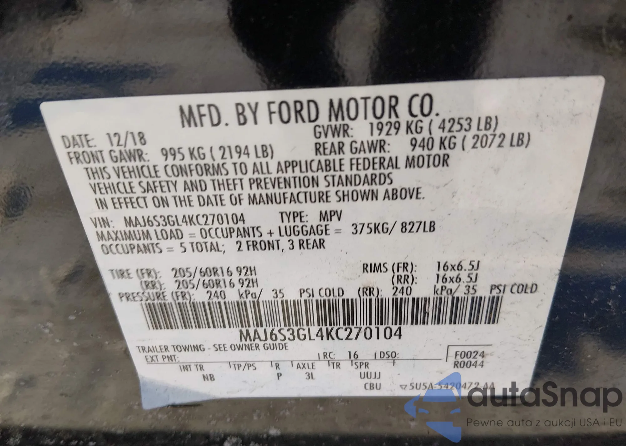 LOT: 44129598 VIN: 4JGFB4KE5MA415315