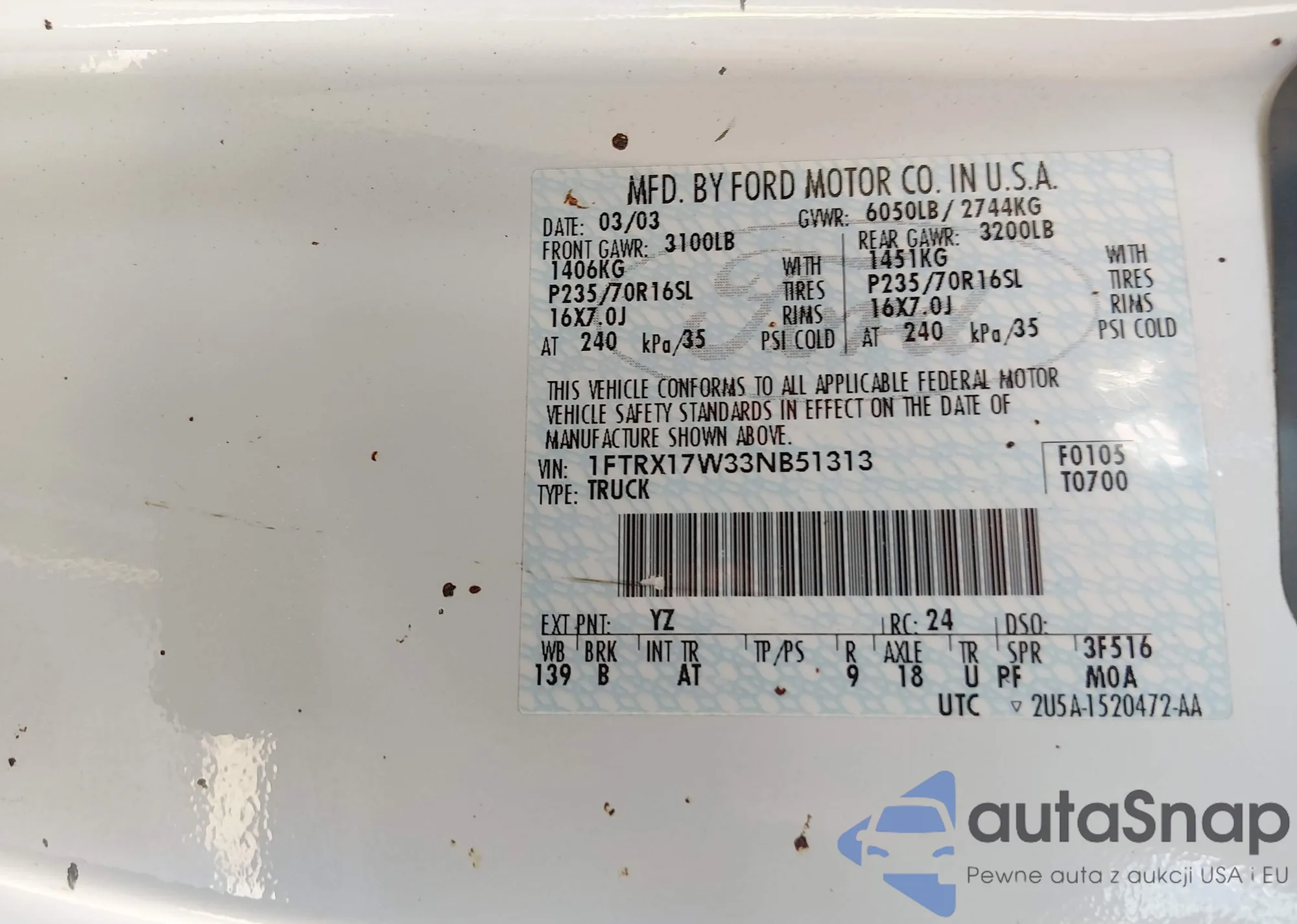 • VIN 1FTRX17W33NB51313