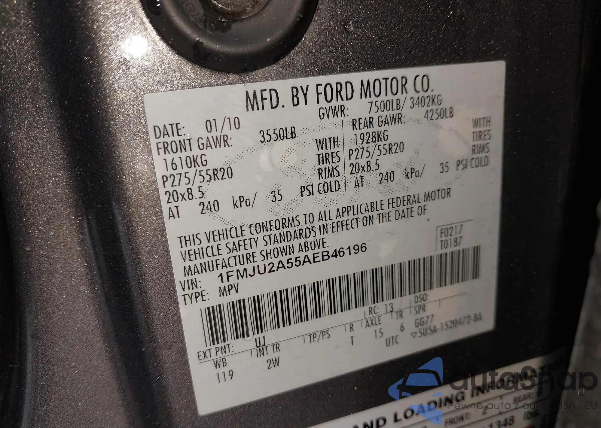 • VIN 1FMJU2A55AEB46196
