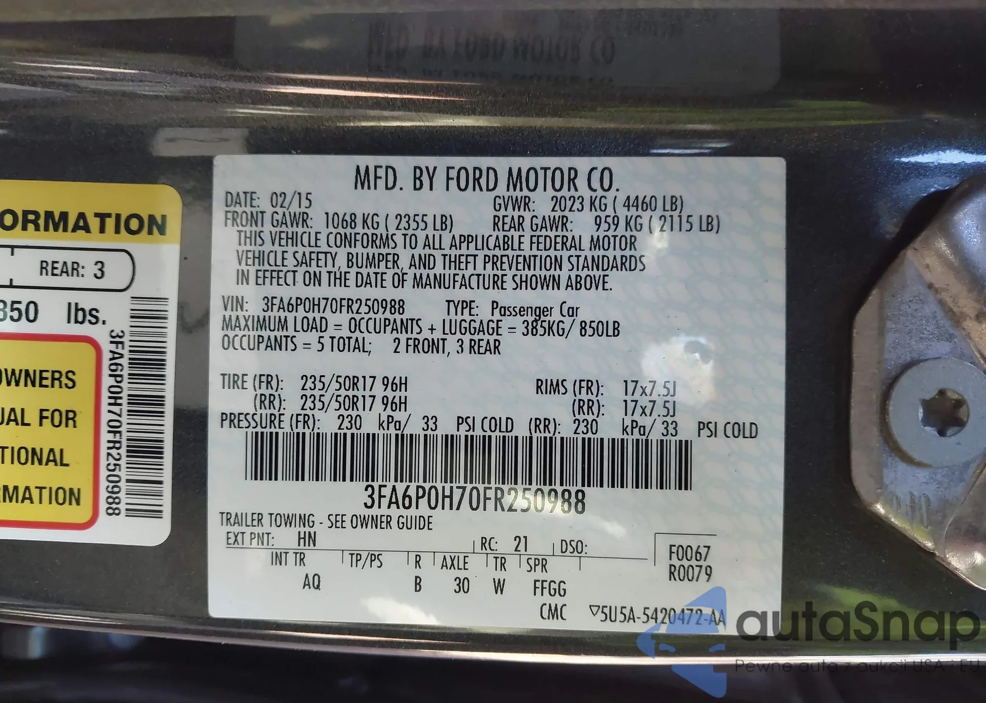 LOT: 44057168 VIN: 1FAHP34N46W239231
