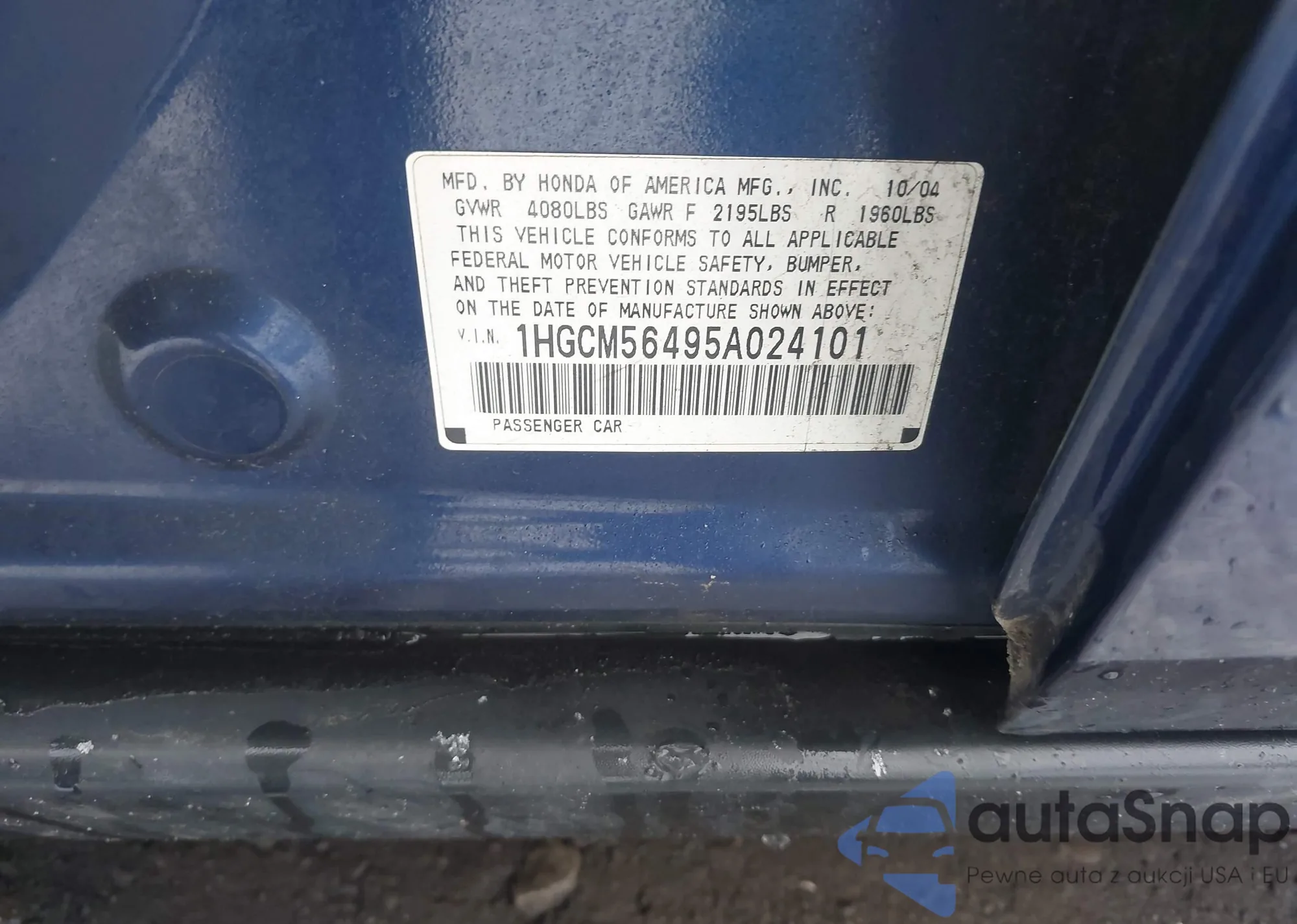 • VIN 19XFL4H95SE004261