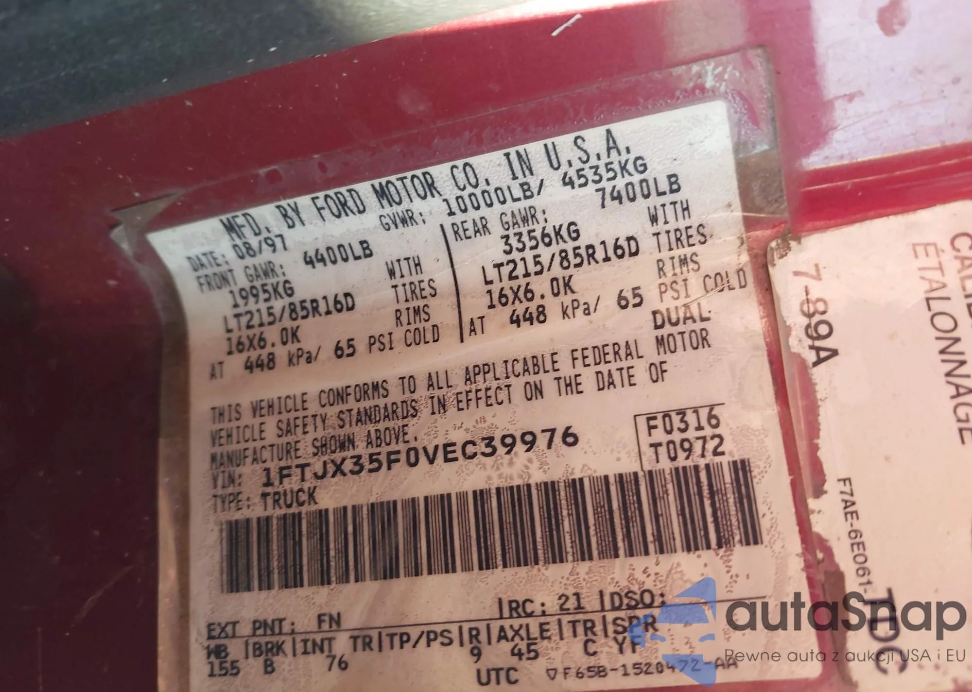 • VIN 1FTJX35F0VEC39976