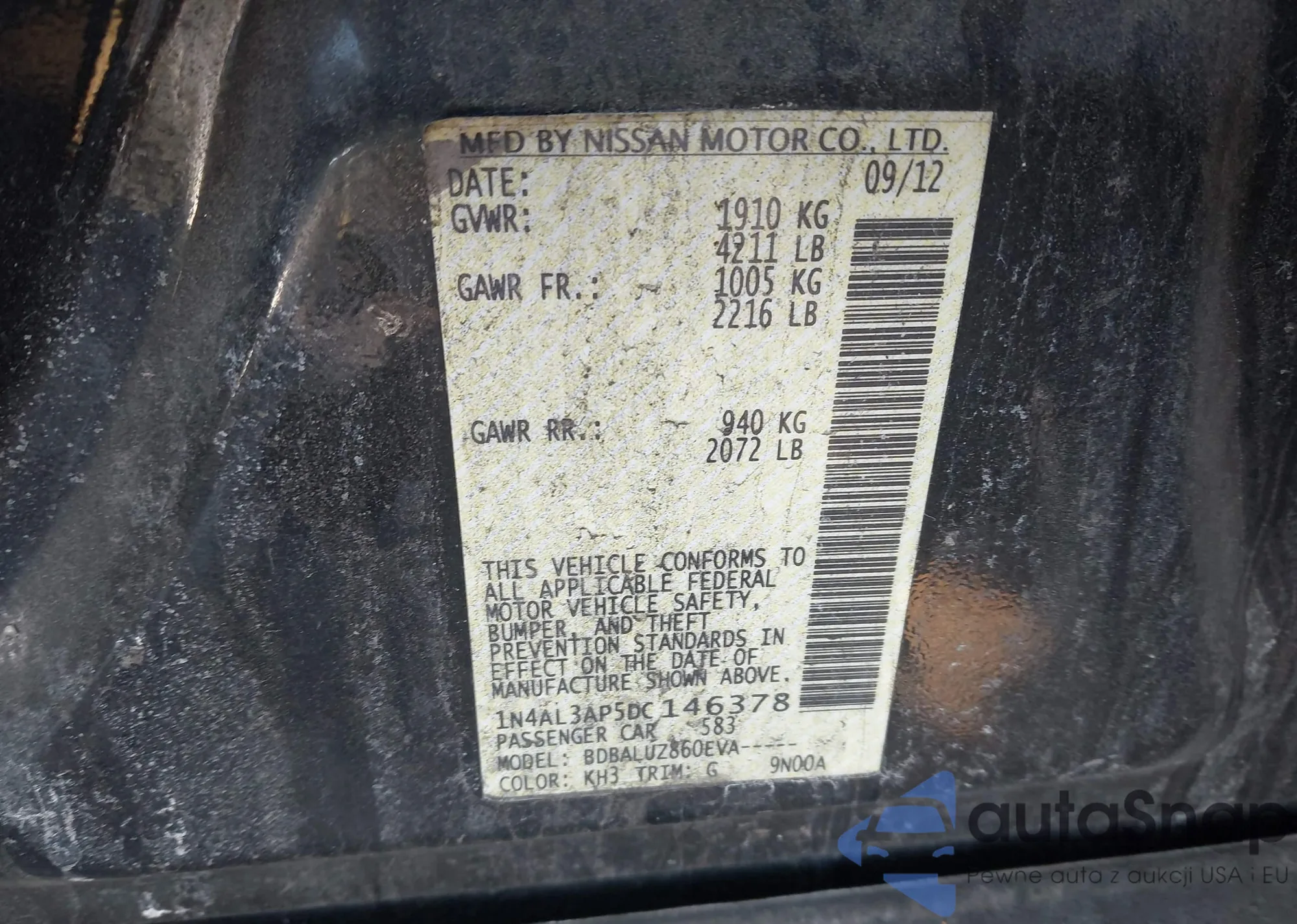 • VIN 1N4AL3AP5DC146378