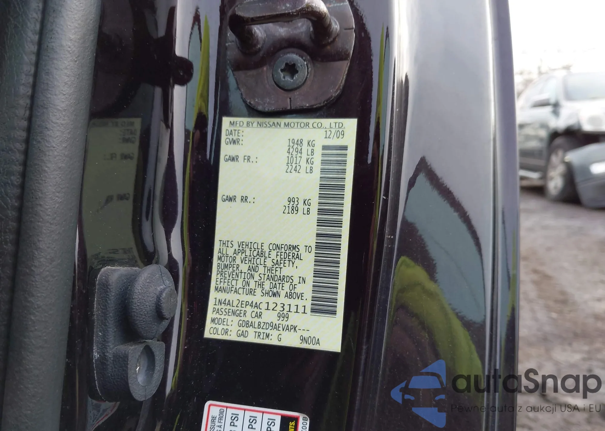 LOT: 44096831 VIN: 1N4AL2EP4AC123111