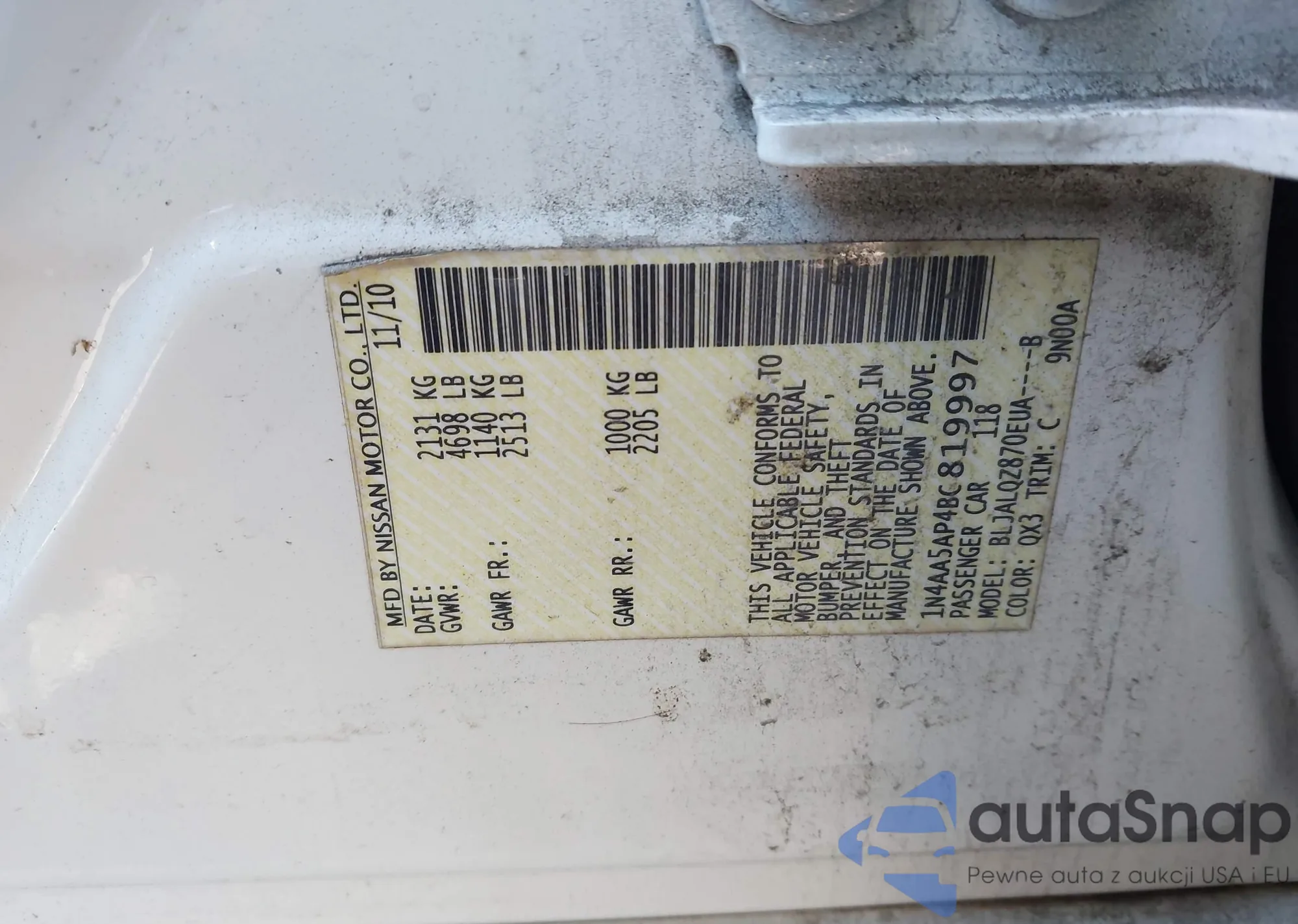 • VIN 1N4AA5AP4BC819997