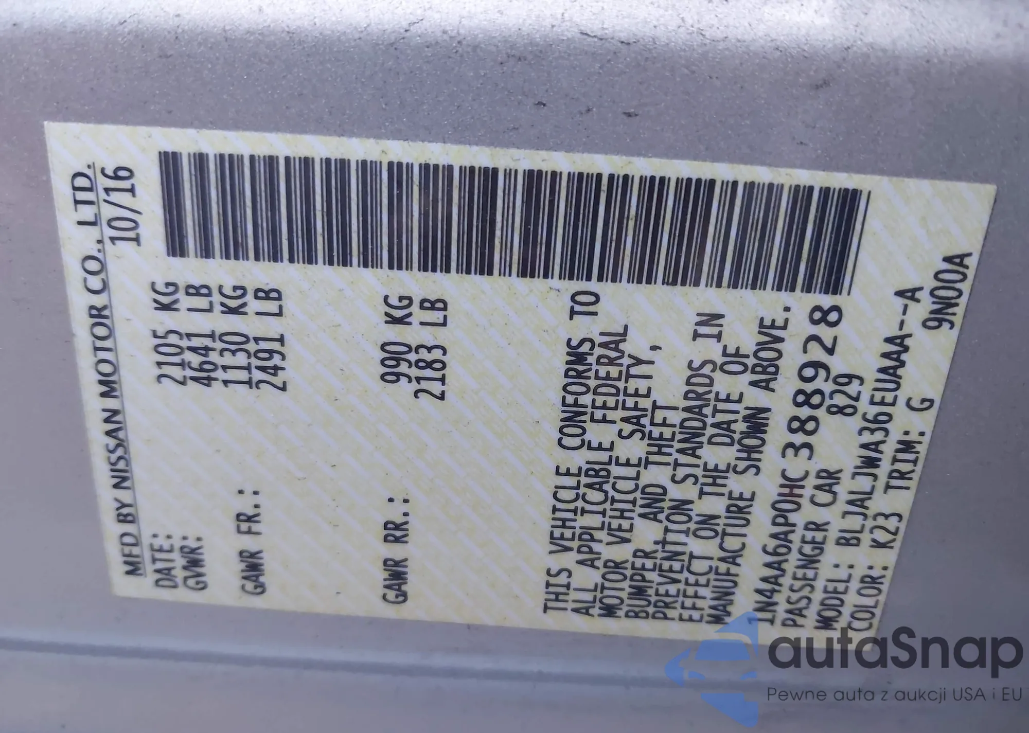 LOT: 44139439 VIN: 1N4BL4DV0MN326005