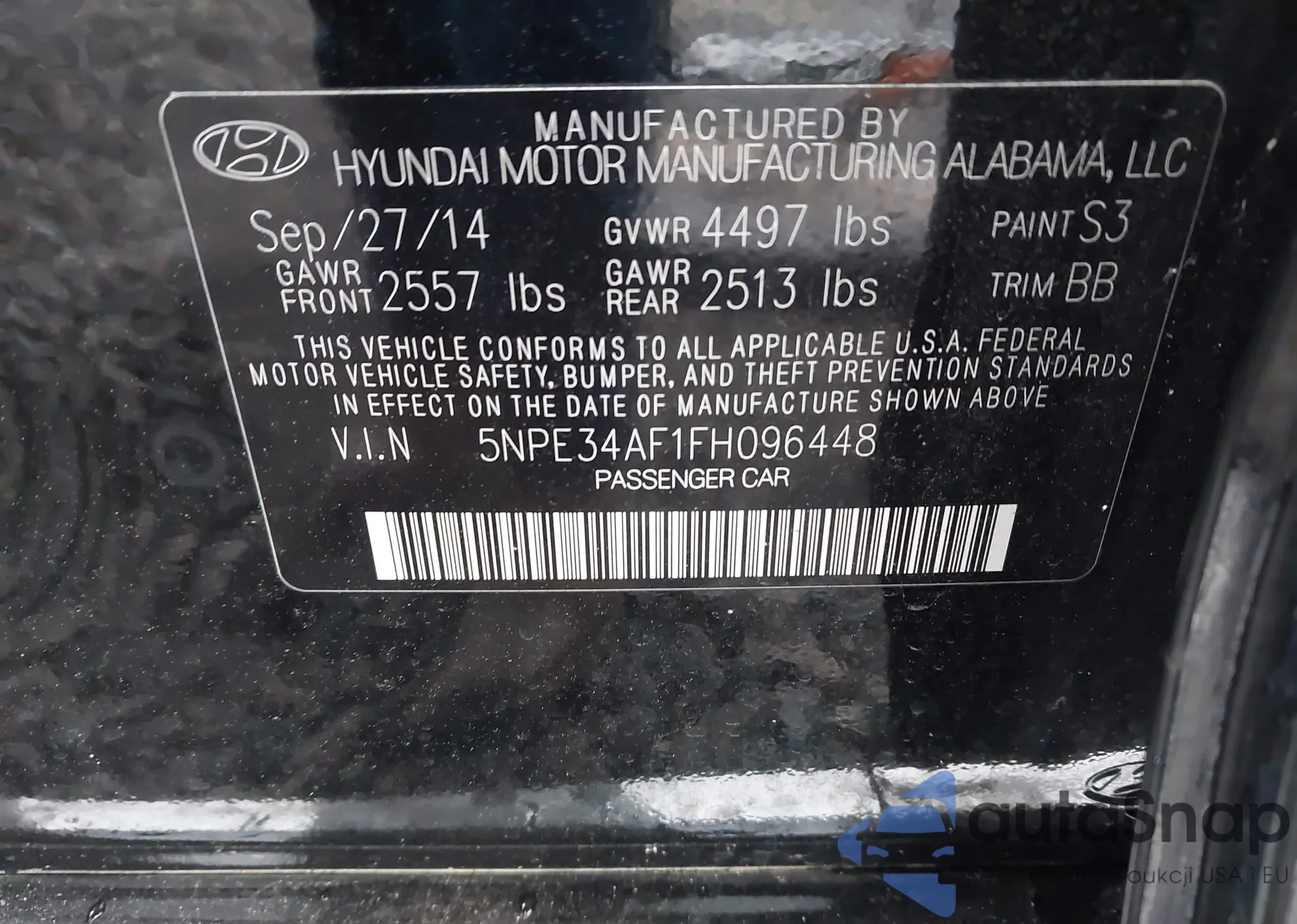 • VIN 5NPE34AF1FH096448
