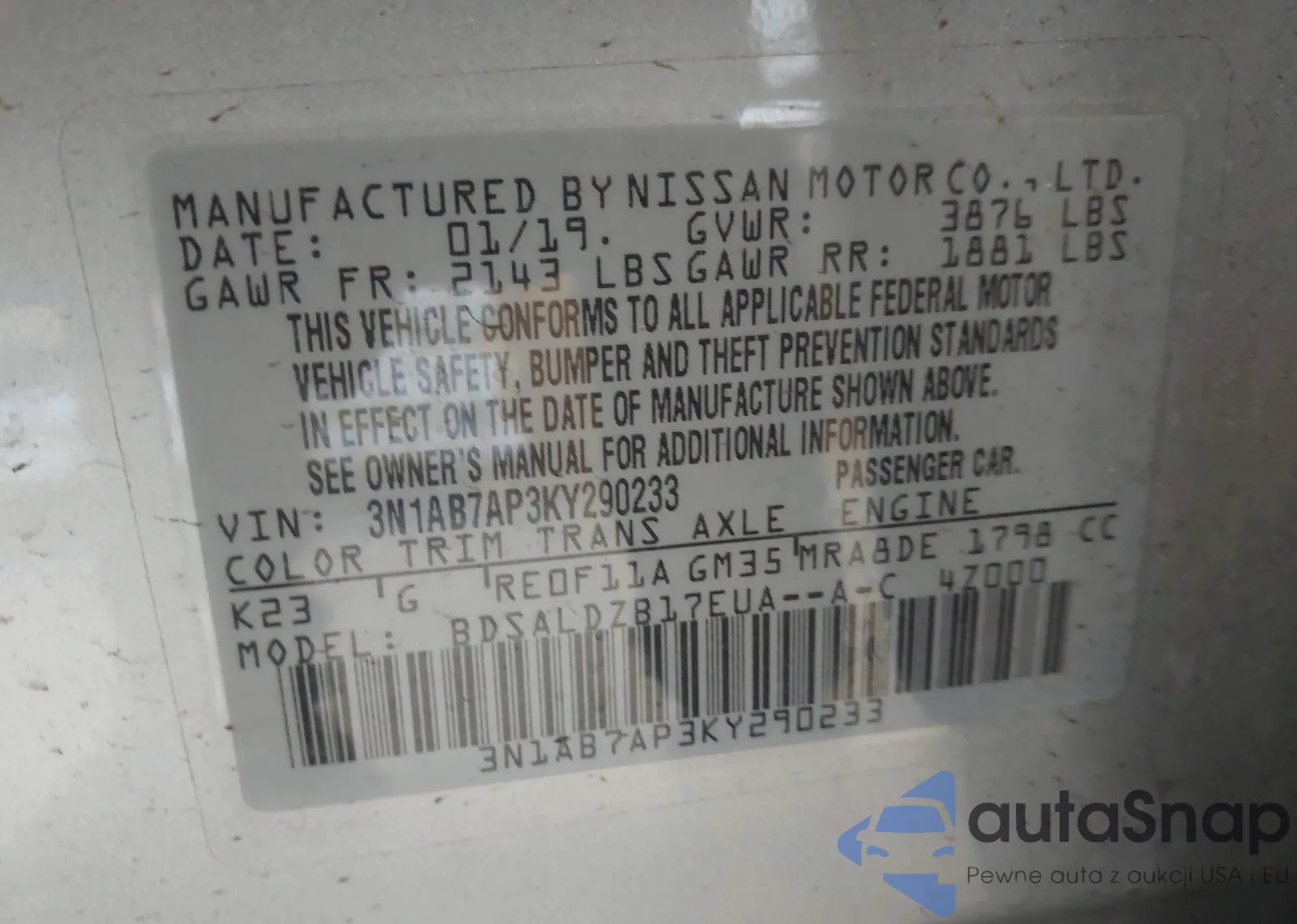 LOT: 43769012 VIN: 1N4AL21E99N448180