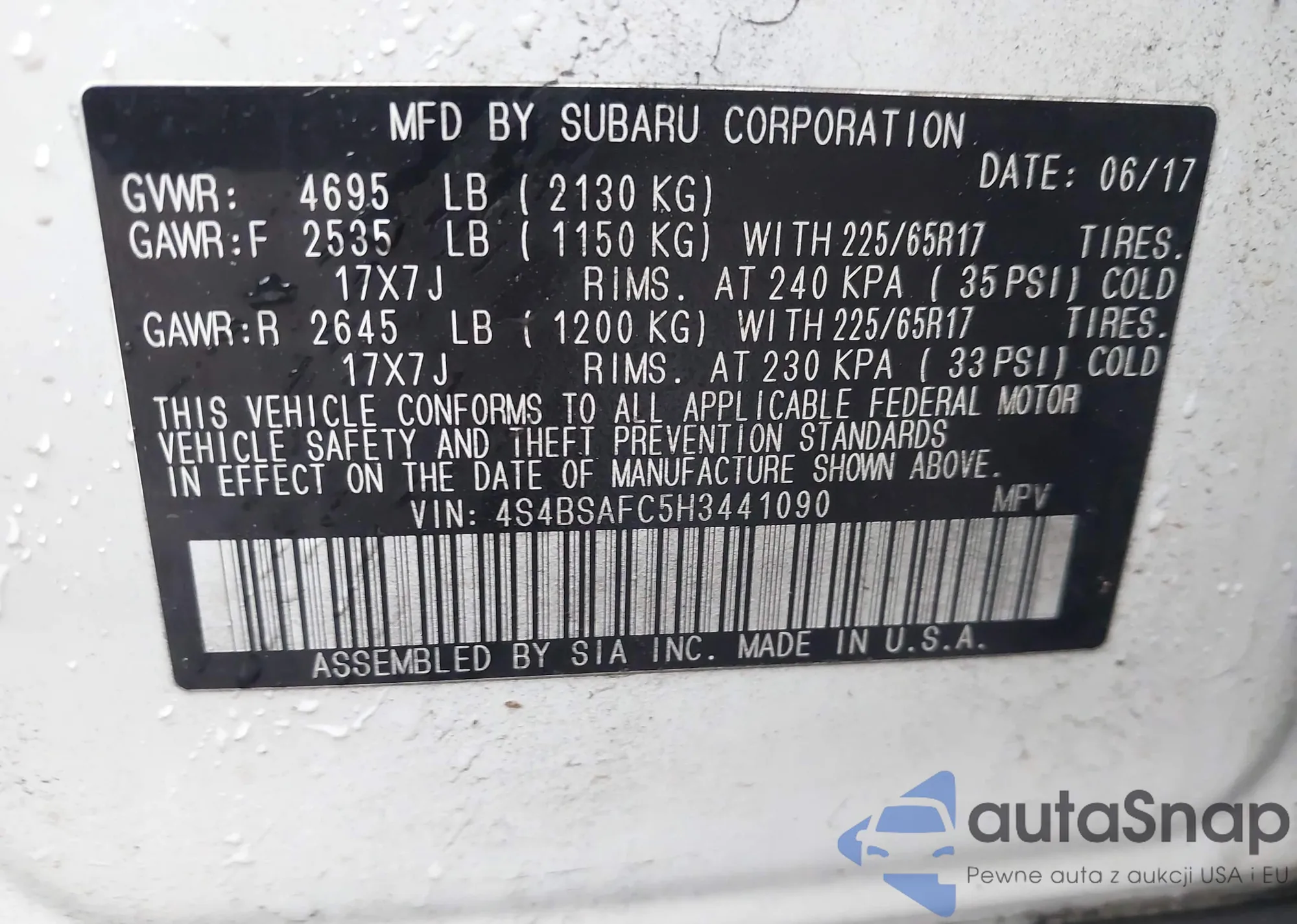 • VIN 4S4BSAFC5H3441090